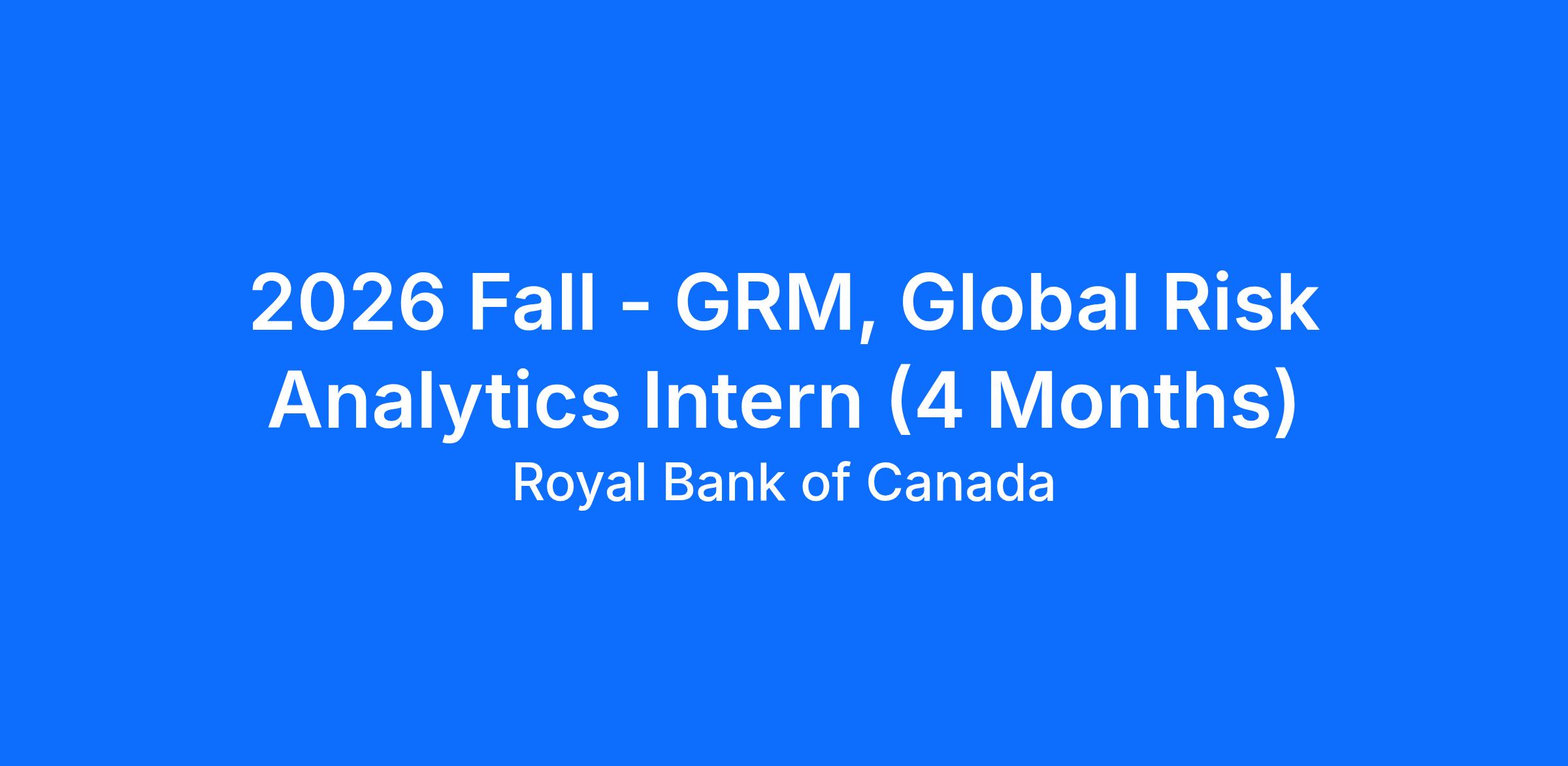 As part of the Group Risk Management team, the Global Risk Analytics Intern is responsible for the conceptual design, development, and ongoing maintenance of the mathematical models used for the measurement and capitalization of the counterparty credit risk of RBC's derivative portfolio. This includes ensuring that the model's underlying methodologies are appropriate and that they are implemented with integrity, to facilitate the effective management of the bank's CCR.