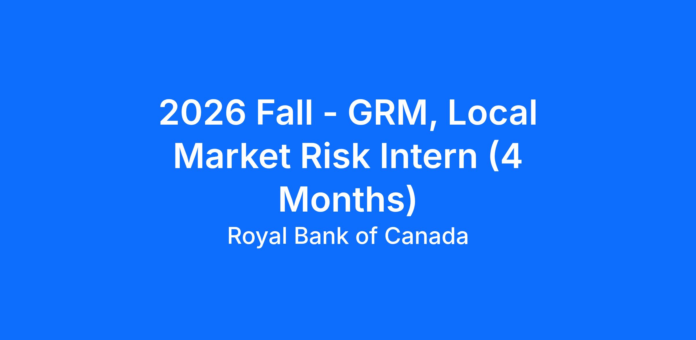 As part of the Group Risk Management team, the 4-month internship provides an opportunity to work within the Local Market Risk (LMR) team to provide independent and effective monitoring, control, and communications of market risk in Capital Market businesses.