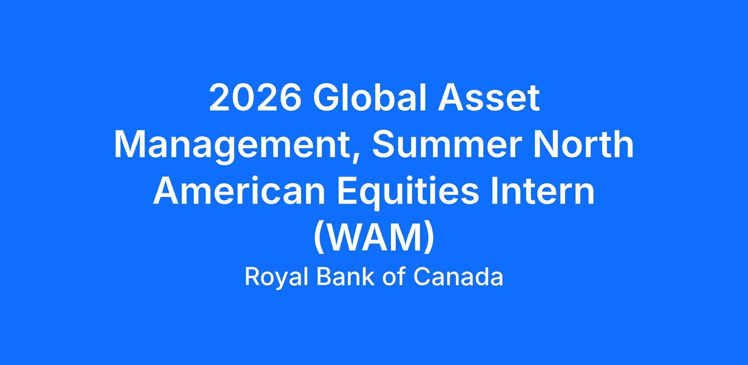 RBC GAM Women in Asset Management Summer Student Internship