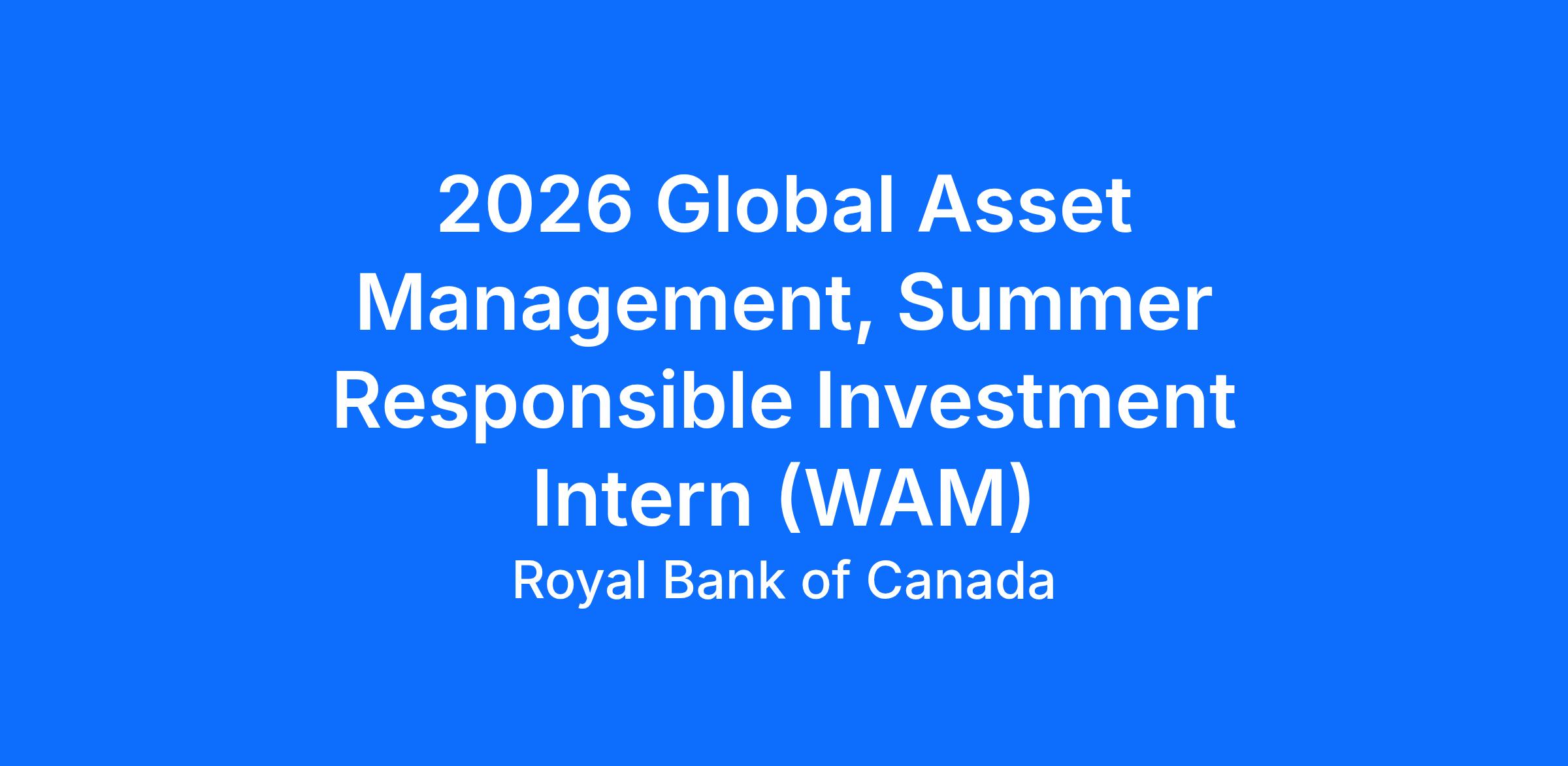The RBC GAM Women in Asset Management Summer Internship Program offers an unparalleled opportunity for undergraduate students to gain experience within the Global Asset Management industry in Canada. In this ESG Intern role, students will work with the Responsible Investment (RI) team to advance the integration of environmental, social, and governance issues into the investment process, and support active stewardship activities.