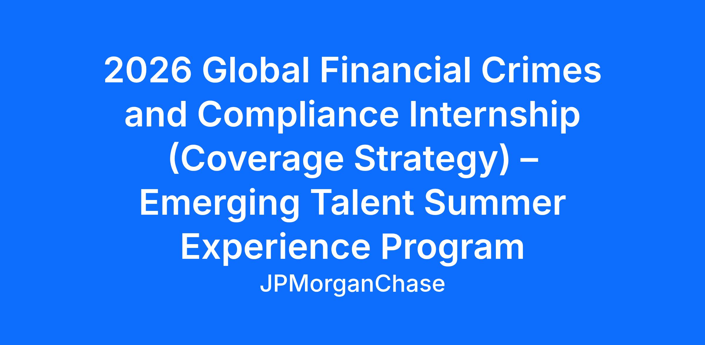 As a Summer Intern within the Global Financial Crimes Compliance (GFCC) team, and specifically Coverage Strategy, you will support JPMorgan Chase’s Anti‑Money Laundering (AML) and Counter‑Terrorist Financing (CTF) monitoring program. Coverage Strategy is responsible for the strategic design, development, and ongoing enhancement of suspicious activity monitoring, ensuring the program is robust, scalable, and responsive to an evolving risk landscape.