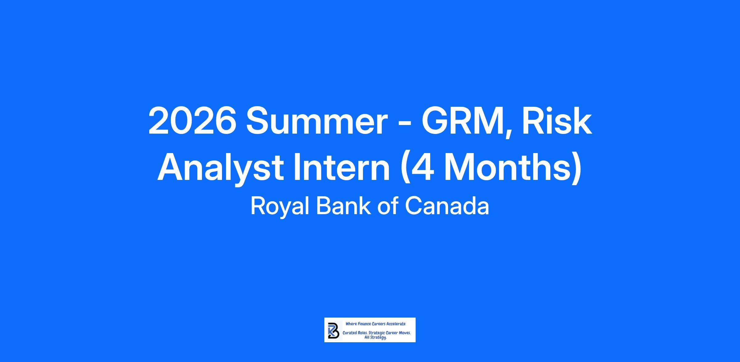 2026 Summer - GRM, Risk Analyst Intern (4 Months)