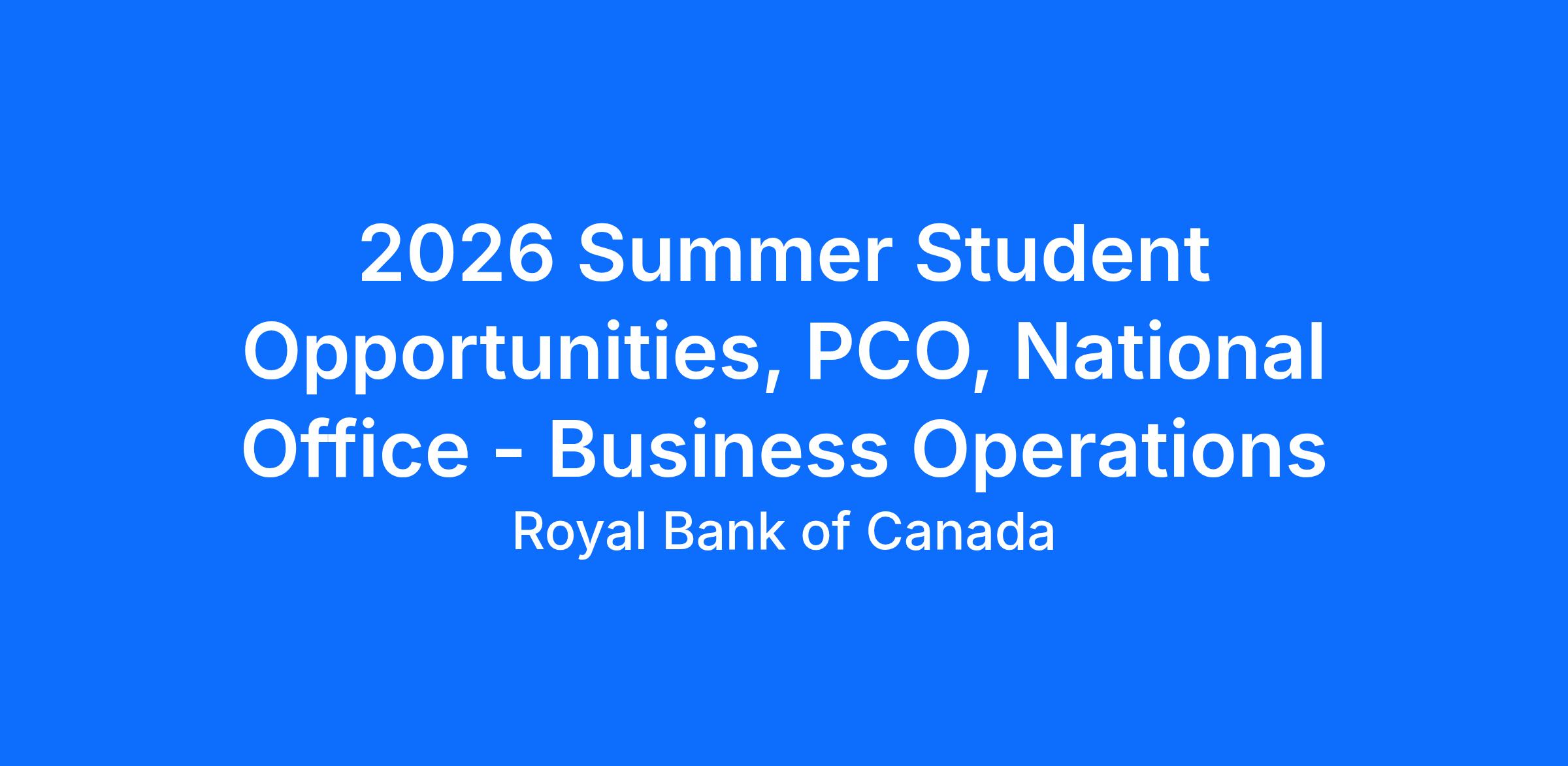 Are you a curious and adaptable student, eager to learn new skills, work with diverse teams, and take on challenges in a dynamic environment? Join Personal & Commercial Operations (PCO) and be part of the national team that enables operations across RBC in Canada. Our student placements offer hands-on experience and meaningful work while contributing to initiatives that improve efficiency, strengthen controls, and enhance the client experience.