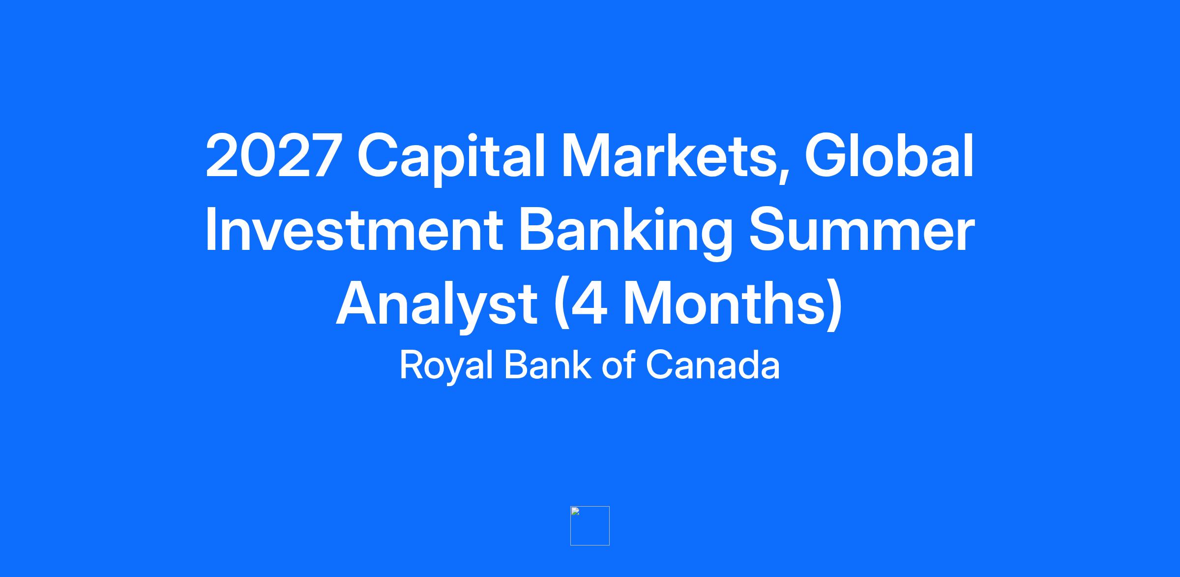 RBC Capital Markets Global Investment Banking division is seeking energetic, bright and talented undergraduates for the Global Investment Banking Summer Analyst Program in Toronto. A significant proportion of Summer Analysts from this well-established program have been hired full-time and gone on to become industry experts that are the backbone of RBC Capital Markets.
