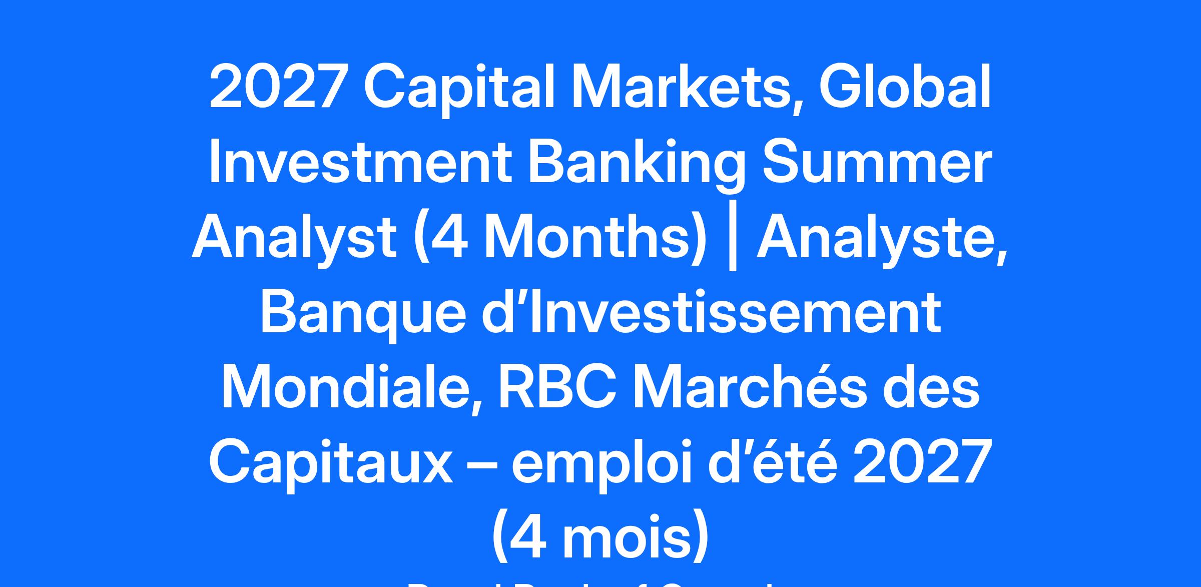 As part of RBC Capital Markets' operations teams, Intern Analysts are assigned various analytical tasks relating to equity and debt issuances, mergers and acquisitions, and other related assignments financial advice. Analysts who participate in this Winter employment program take advantage of the opportunity to hone their skills and participate in interesting and innovative operations, in addition to learning alongside the most competent professionals in the sector.