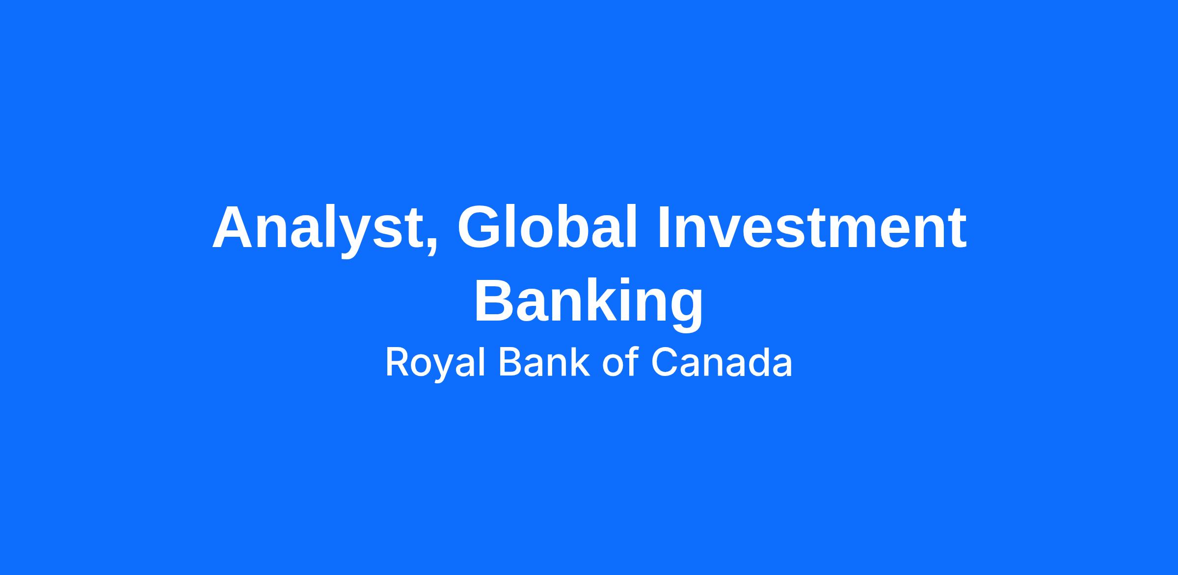 RBC Capital Markets Global Investment Banking division is seeking an Analyst to join the Investment Banking team in Vancouver.