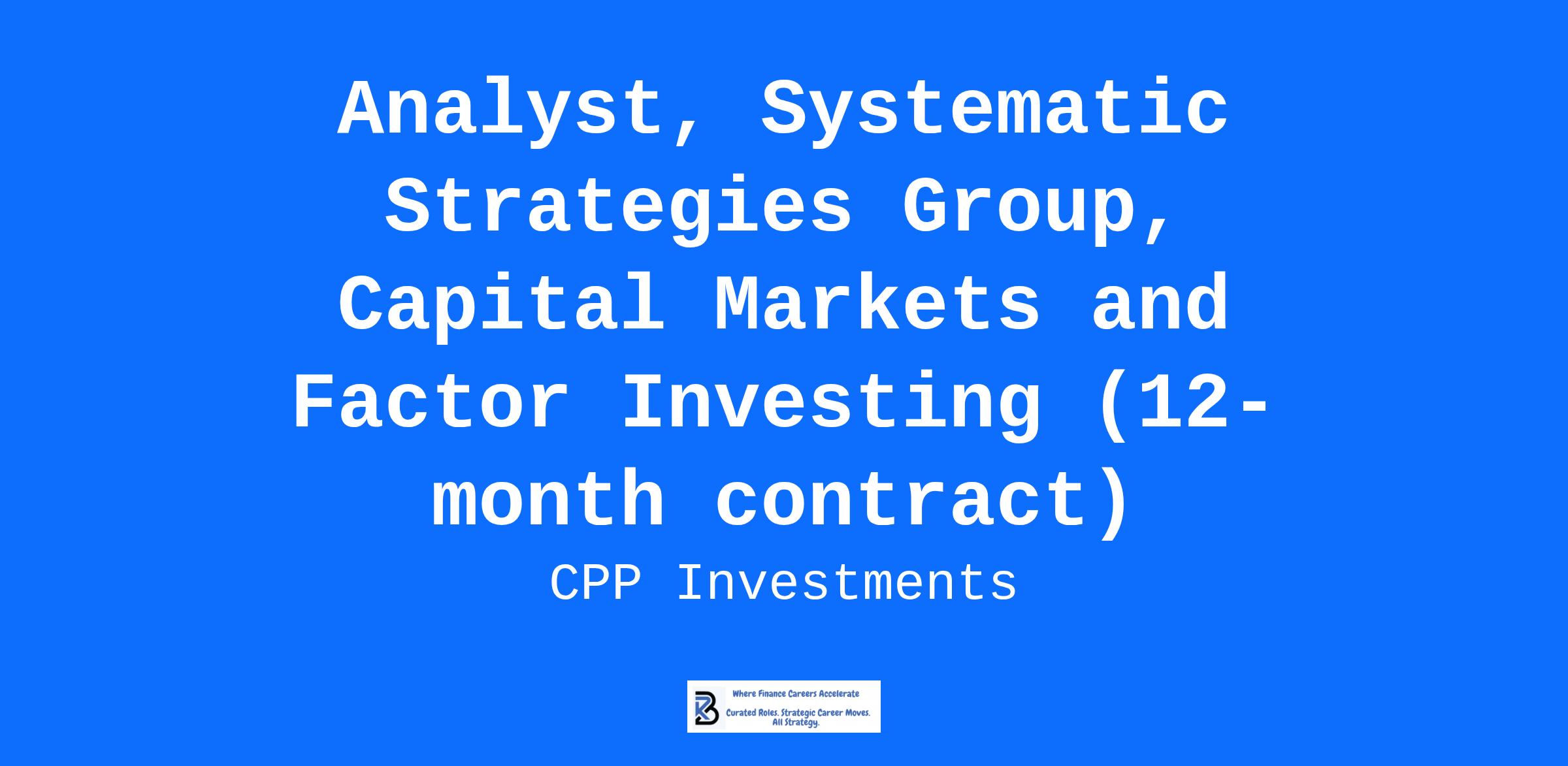 The Systematic Strategies Group (SSG) group within the Capital Markets and Factor Investing department is recruiting for an analyst for a 12-month contract with a tentative start date in May 2026. SSG develops and manages systematic investment strategies across global markets spanning equities, fixed income, commodities, currencies, and volatility. SSG invests in absolute return strategies as well as long-only strategies, designed to provide a diversifying return stream to the total fund.