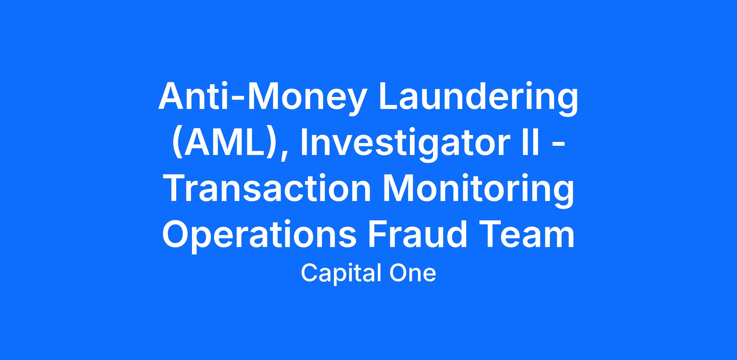 Are you looking for a challenging role that includes the convenience of working virtually at home? Then a Capital One Anti-Money Laundering Investigator role may be the role for you! You must be within 50 miles driving distance from our Capital One hub in Wilmington, DE / Richmond, VA / Plano, TX / Chicago, IL / McLean, VA.
