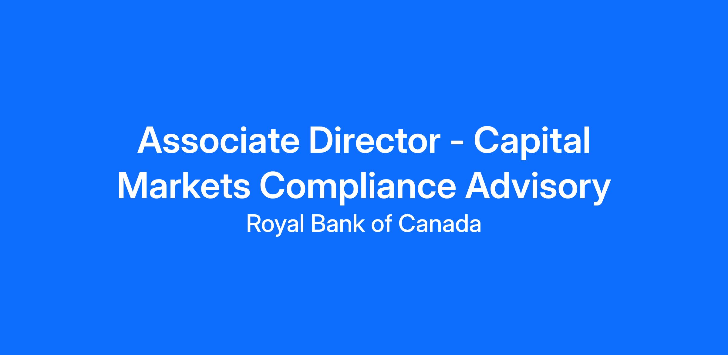 - General Compliance: provide guidance and advice on general Capital Markets and RBC enterprise compliance policies.