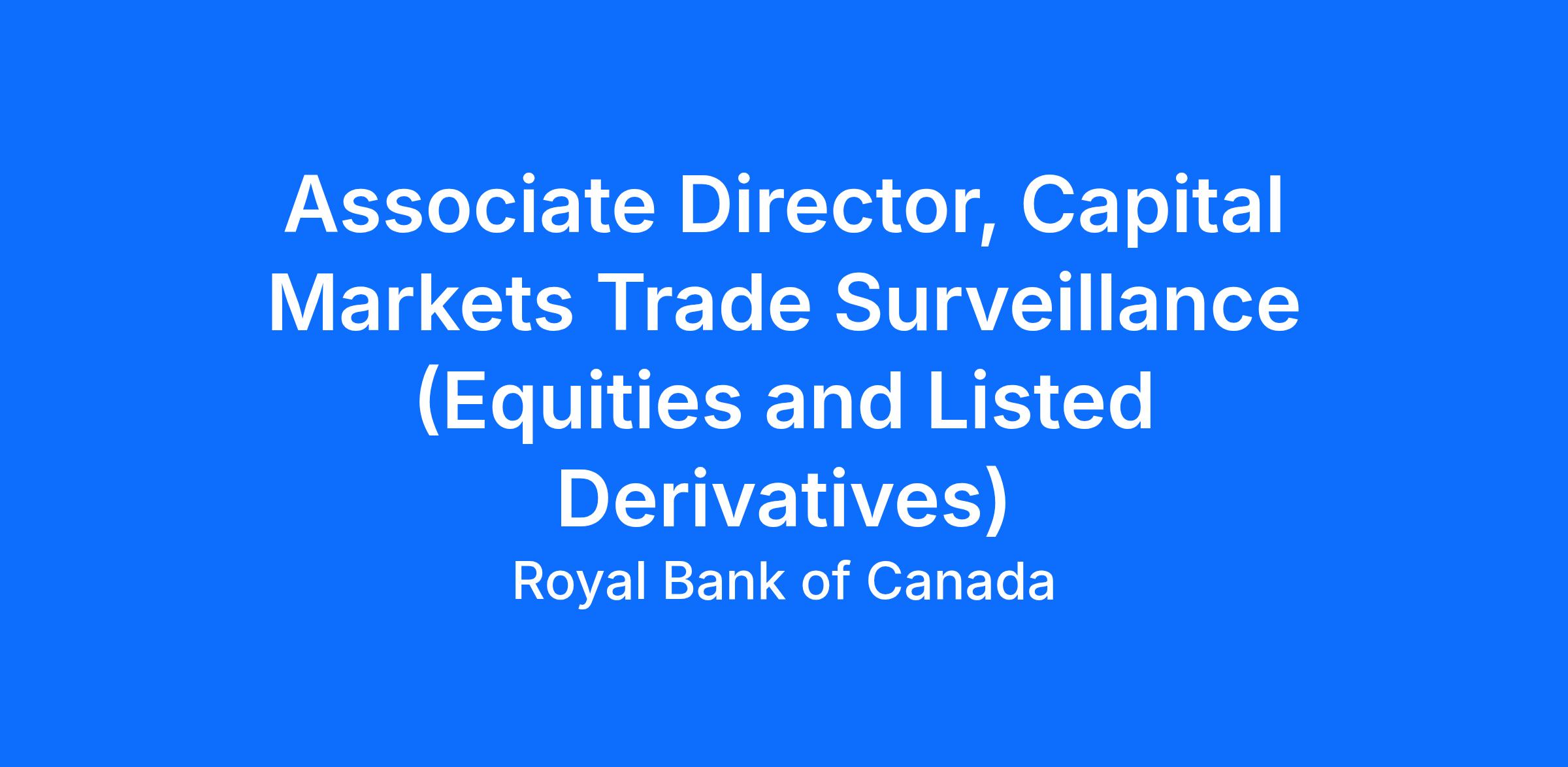 Lead a trade surveillance program for Equities and Listed Derivatives products to ensure an effective monitoring program which successfully addresses the regulatory requirements set out in CIRO Rules, Exchange Rules and RBC Policies focusing on market abuse and market manipulation for Capital Markets, Wealth Management (DS) and Direct Investing.