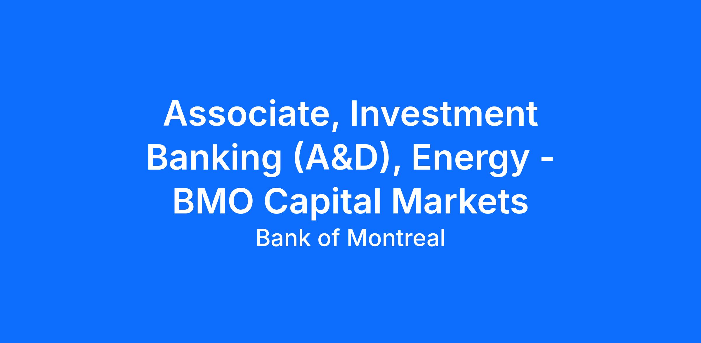 Reporting to the Managing Director and Head, A&D Advisory, within the BMO Capital Markets Investment Banking Energy Group, the “Associate, Investment Banking (A&D)” role is responsible for completing, coordinating, and leading detailed financial and technical analysis including the integration of engineering, geological and financial information, and will work on a blend of divestiture, acquisition, and merger mandates. The ideal candidate acknowledges the hybrid nature of energy banking, combining both financial and technical elements of the industry.