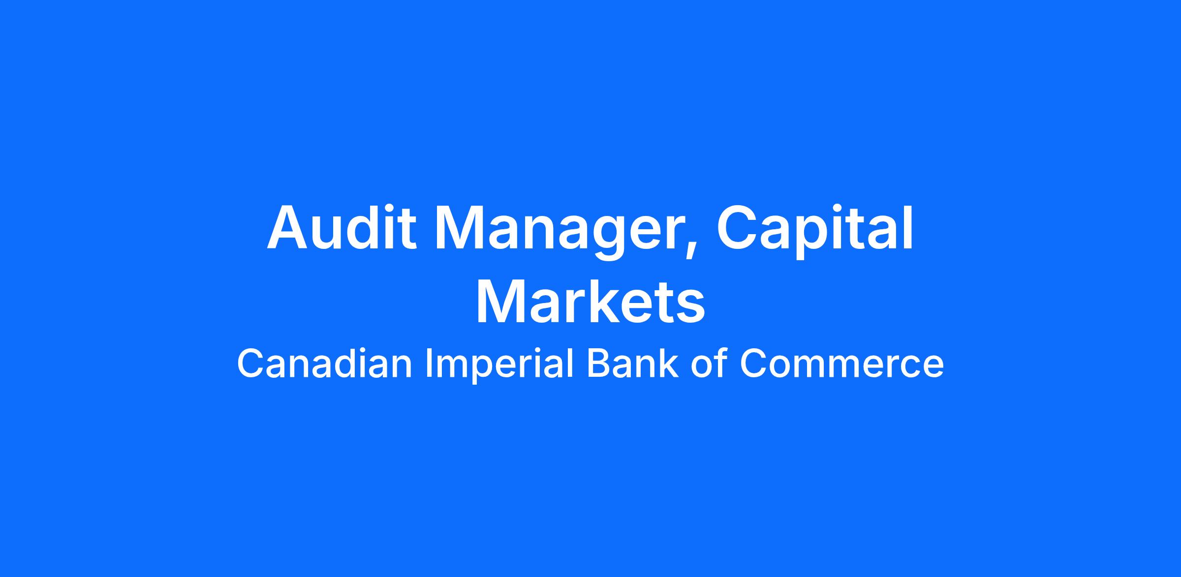 In this role, you’ll have the opportunity to participate and provide leadership in large and highly complex audits in Capital Markets and effectiveness of operational and management controls in accordance with the CIBC Audit and industry best practices and develop and maintain strong relationships with business partners.