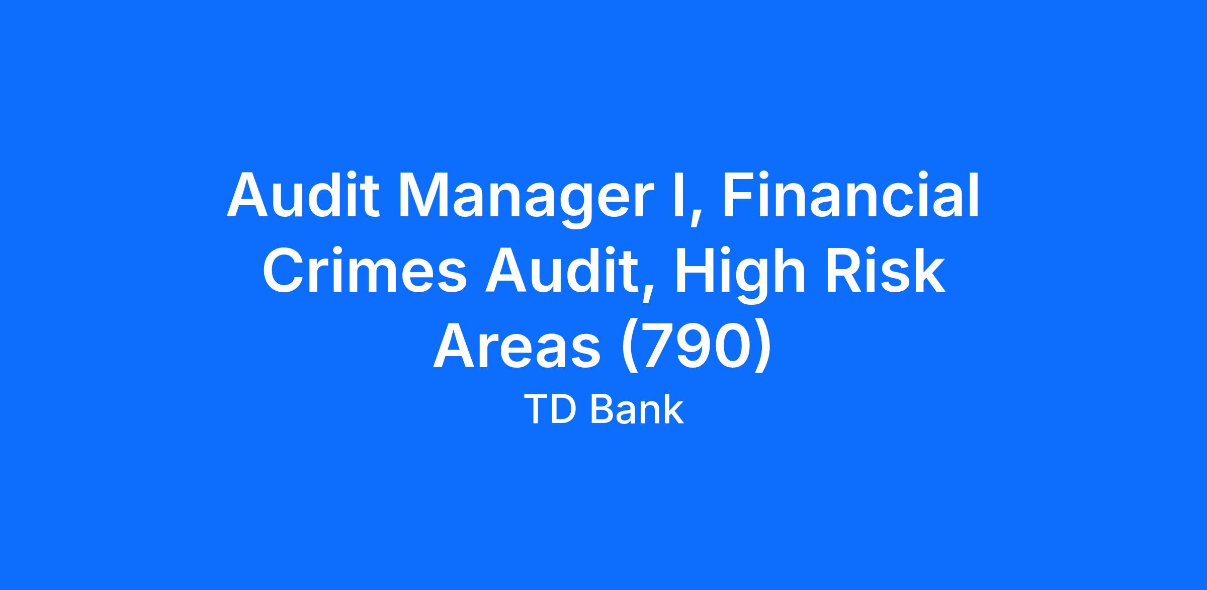 The position of Audit Manager I, Financial Crimes Audit, High Risk Areas resides within the Financial Crimes Centre of Excellence of TD's Audit Department. The Audit Manager I, Financial Crimes Audit, High Risk Areas is a Financial Crime Professional, trusted advisor and adaptive leader with knowledge and experience of the Financial Crime Risk Management Program including technology, data, models and emerging technologies such as Artificial Intelligence and Machine Learning.