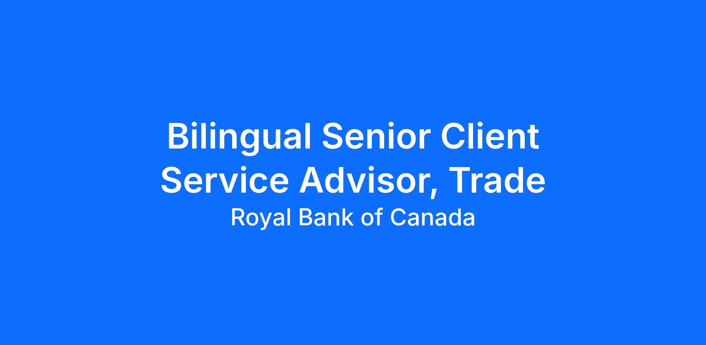 Bilingual Senior Client Service Advisor, Trade