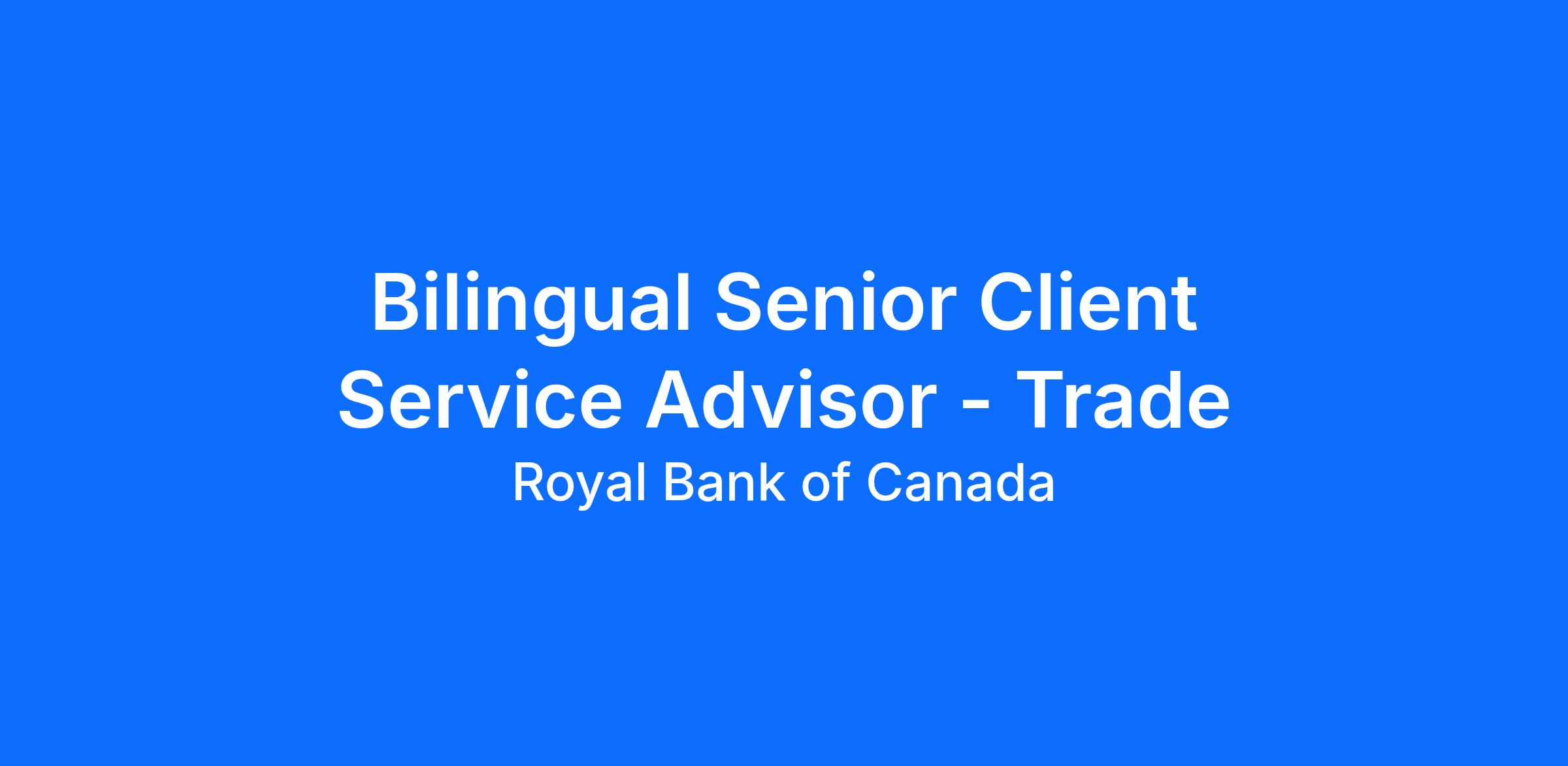 Bilingualism (English and French) required, as you will regularly serve our clients and do business with RBC partners and/or employees across Canada with English and French speaking needs.