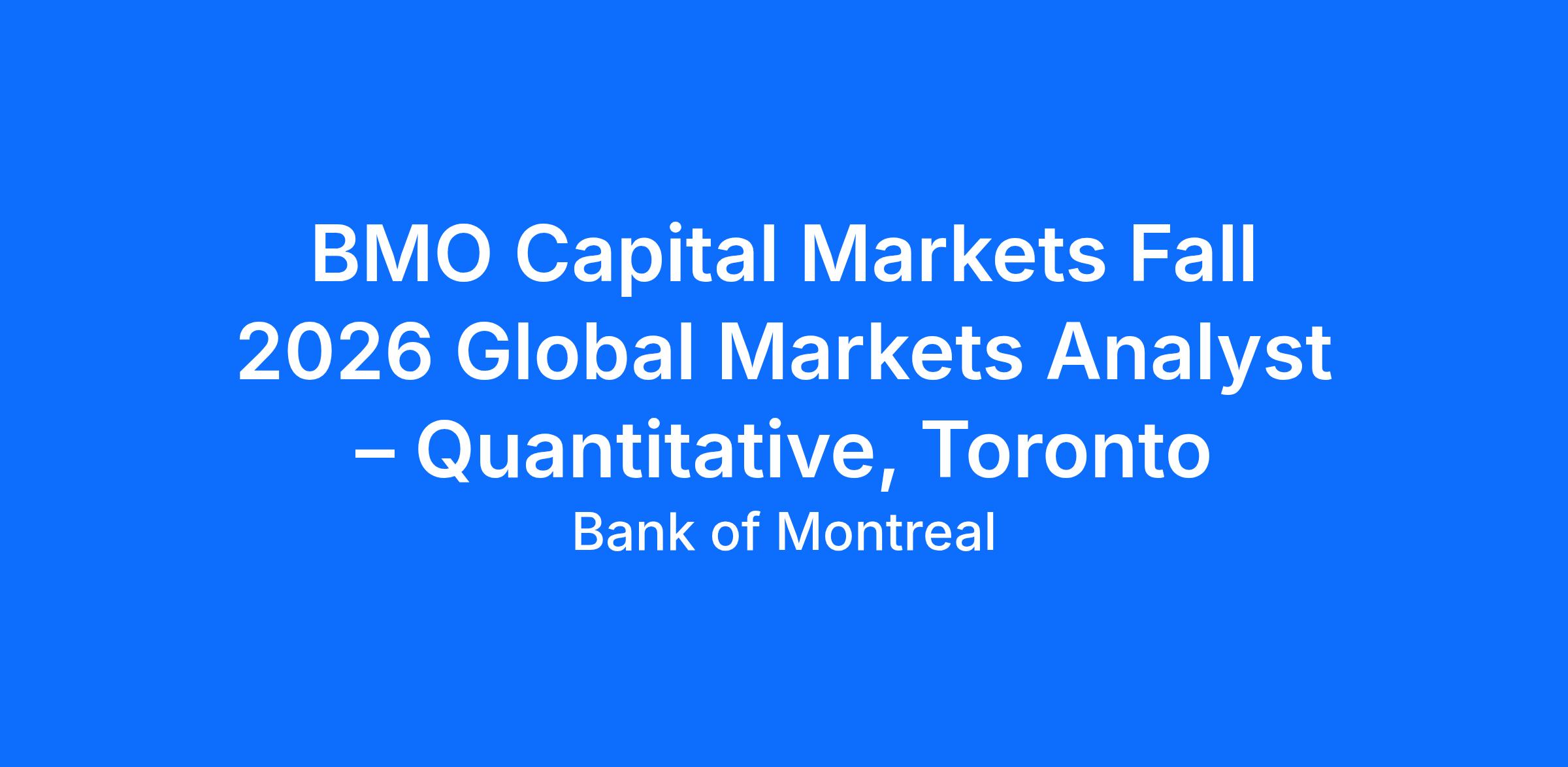 Upon successful completion of this internship, you may receive a full-time offer from BMO Capital Markets