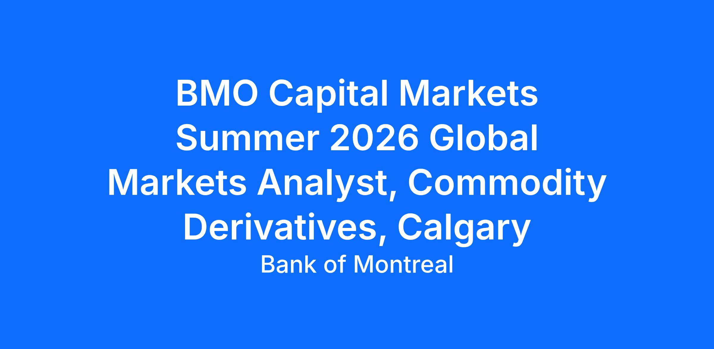 Summer analyst will work on one desk in Global Markets over a 14-week internship period. With a specific role available in Calgary for the winter term, the potential candidate would work on the commodity derivatives desk in Calgary and will work alongside a team of energy professionals in fast paced and competitive environment.