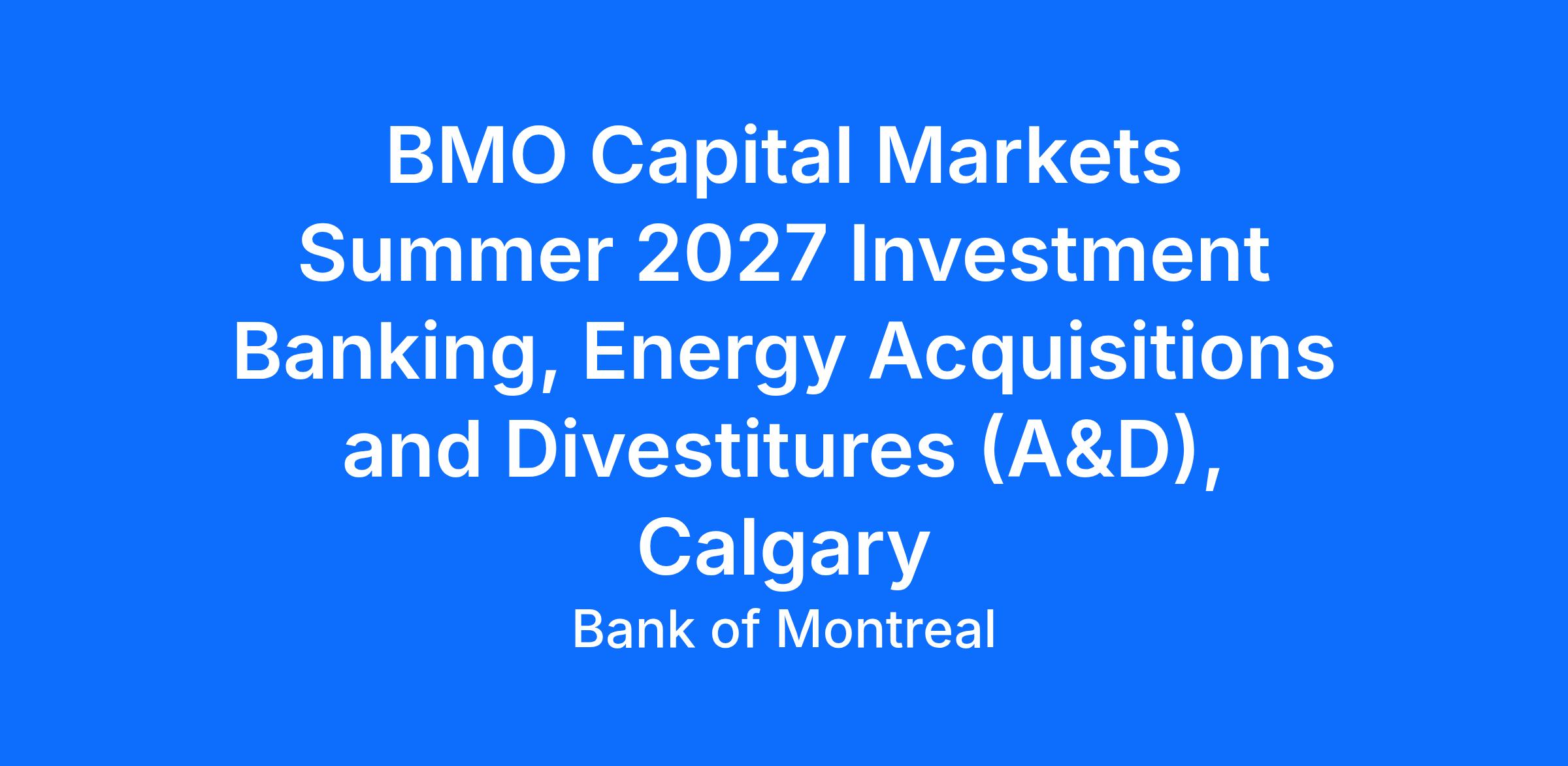 The Energy Acquisitions and Divestitures (A&D) intern Engineer / Data Scientist / Geoscientist program is designed for candidates in their second and/or third years of an undergraduate engineering, computer science, or geoscience program. Intern Engineers / Data Scientists / geoscientists will participate in a one-week training and orientation program and will then work within the Investment Banking Energy A&D Advisory group during the 14-week program. In addition to this experience, the program includes the opportunity to network across various business groups, learn about the culture of BMO Capital Markets, participate in training and learning seminars, and obtain career guidance from dedicated mentors.