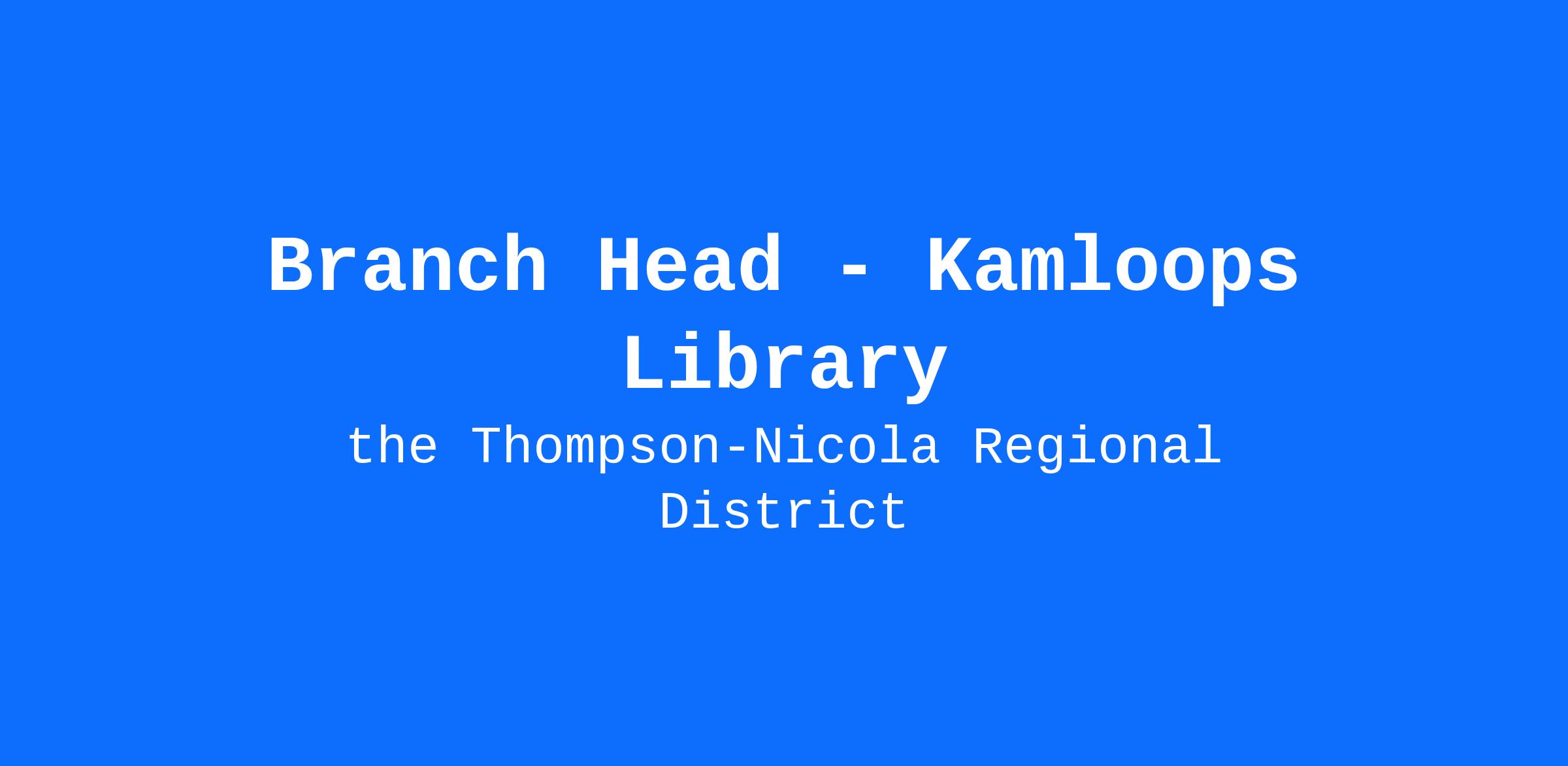 The TNRL is recruiting a Branch Head for the Kamloops Library who is keen to work in a vibrant and busy public library. The Branch Head is responsible for the effective delivery of services including modelling superior customer service, leading a library team, and ensuring a top-notch patron experience by taking ownership of the facility, its collections and programs. As one of your many attributes, you’re a community builder, an effective communicator, a champion of intellectual freedom and will help foster strong relationships and partnerships across the regional district.
