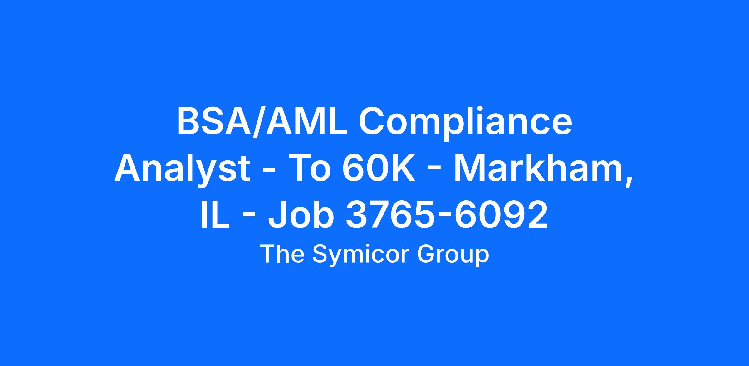 BSA/AML Compliance Analyst – To $60K – Markham, IL – Job # 3765-6092