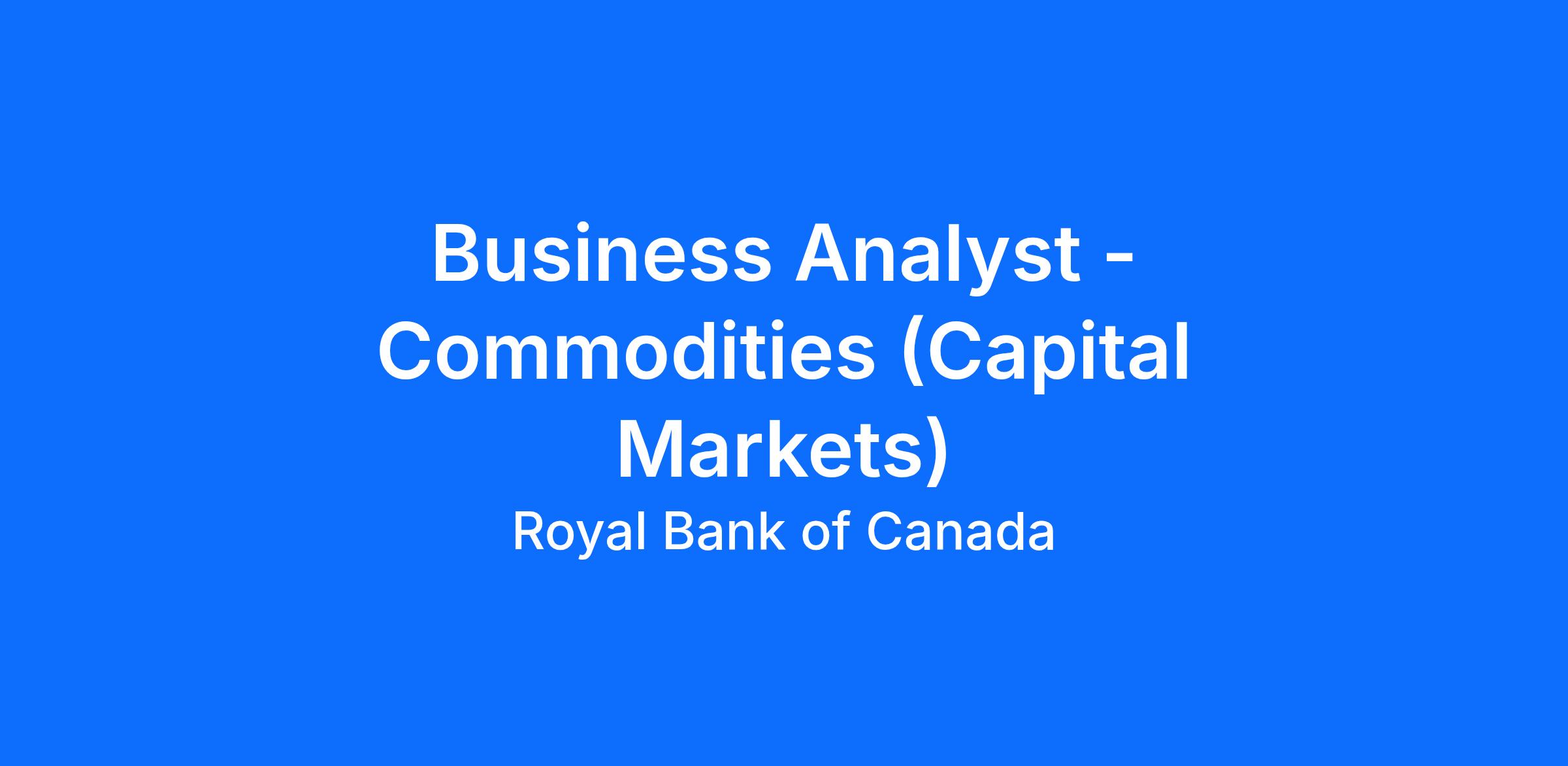 The Capital Markets Commodities trading team is one of the fastest-growing business groups within RBC. We trade across Oil & Gas, Power, Emissions, Agriculture, Commodities Index, Base Metals, and Precious Metals—spanning financial and physical deliveries with linear and non-linear instruments. Operating from Toronto, Calgary, New York, and the UK, we're seeking a Business Analyst to join our Commodities team and help enhance the systems and processes that support this dynamic business.