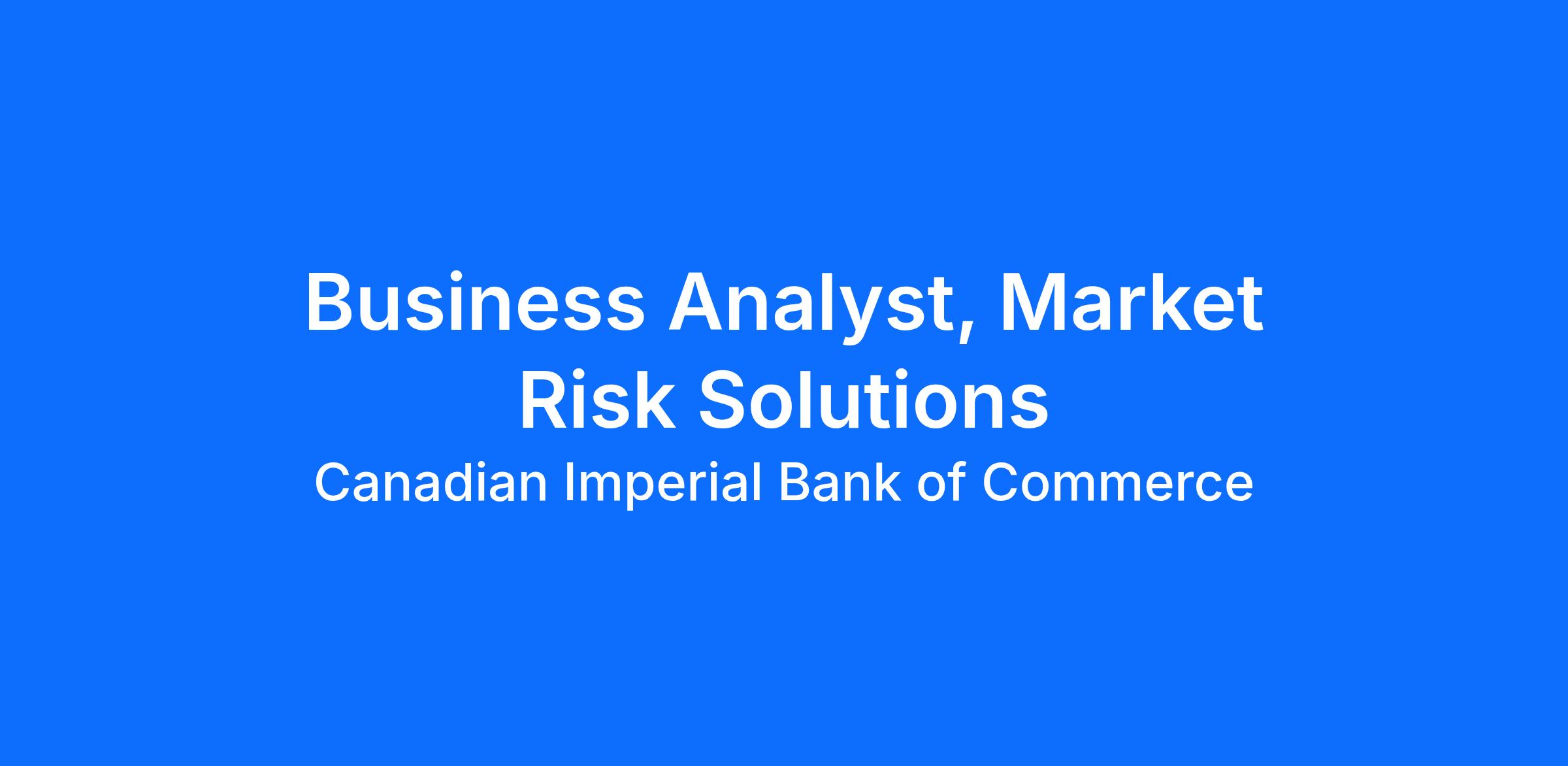 As a Business Analyst on the Capital Markets Risk Management (CMRM) team, you'll assist the Director, Market Risk Solutions by providing subject matter expertise in developing robust and sustainable solutions for market risk capture within our market risk systems. You'll build and maintain strong working relationships across a matrix organization, collaborating closely with both CMRM groups (Trade Floor Risk Managers, Data, Governance, Reporting, Quantitative Solutions) and non-CMRM stakeholders (Risk Technology, Front Office and FO Technology, Model Vetting, Finance, Audit). Your expertise will help ensure our market risk processes are methodologically sound and operationally efficient, supporting the ongoing evolution of risk measurement at CIBC. You'll play a key role in driving projects forward, engaging stakeholders, and contributing to the strategic direction of market risk initiatives.