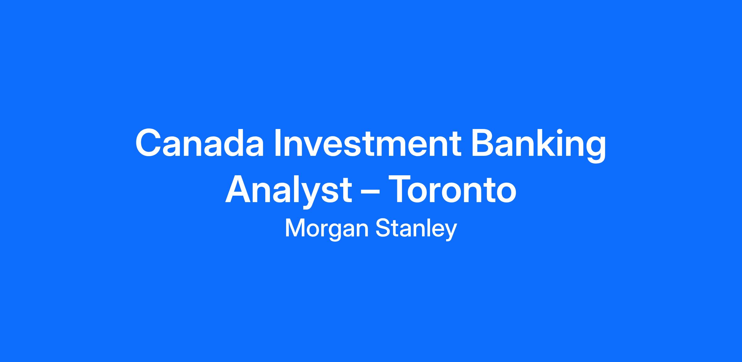 We are seeking an Investment Banking Analyst with strong investment banking experience to join Morgan Stanley Canada. This role would be based in our Toronto office. The successful candidate will have the opportunity to work with global and Canadian corporate clients on a wide range of complex transactions including mergers and acquisitions and equity / debt financing transactions. This role would require strong collaboration with professionals throughout the global firm to deliver high quality advice and execution to our clients.