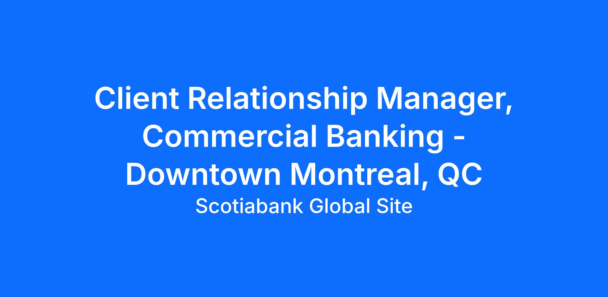 The Client Relationship Manager contributes to the overall success of Canadian Commercial Banking ensuring specific individual goals, plans, initiatives are executed / delivered in support of the team’s business strategies and objectives. Ensures all activities conducted are in compliance with governing regulations, internal policies and procedures.