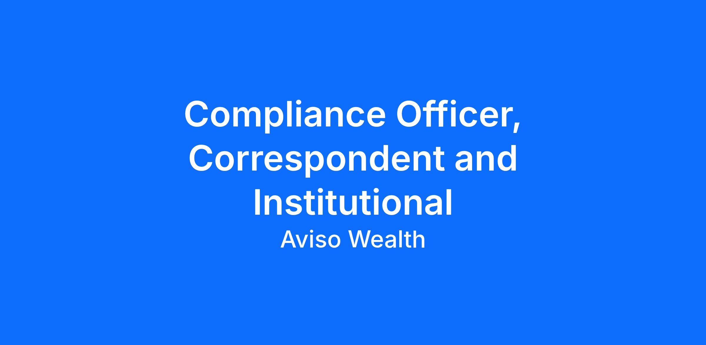 Reporting to the Director Correspondent & Institutional Compliance, the Compliance Officer is responsible for primarily day-to-day compliance activities for the Aviso Correspondent Partners business line of Aviso Financial Inc. and will occasionally assist with the other business lines. The Compliance Officer will be registered as a Designated Supervisor with the Canadian Investment Regulatory Organization (CIRO)