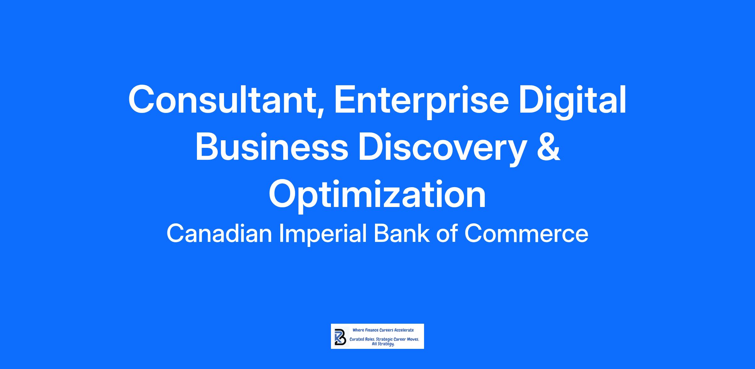 The Enterprise Digital Business Discovery & Optimization team contributes to CIBC’s evolving digital strategy as the industry changes and our needs evolve. As the Consultant you will support the optimization pillar within Enterprise Digital, and will be responsible for enabling our businesses by supporting cross-functional deep dives on complex enterprise problems. This highly collaborative role requires strategic thinking, problem solving, and influencing to support development of strategic solutions that support removal of foundation impediments. The role will also facilitate, solicit, promote and assess ideas and recommendations on an ongoing basis for team members and internal partners, through formal and informal methods. You'll be team-oriented and capable of partnering across the team in order to drive increased profitability and productivity to automate and digitize our bank to help build the bank of the future. This team will identify gaps and implement solutions to optimize end to end process and operating models with focus on digital & AI solutions - leveraging best-in-class business practices and technology to deliver business benefits and elevate end user experience.