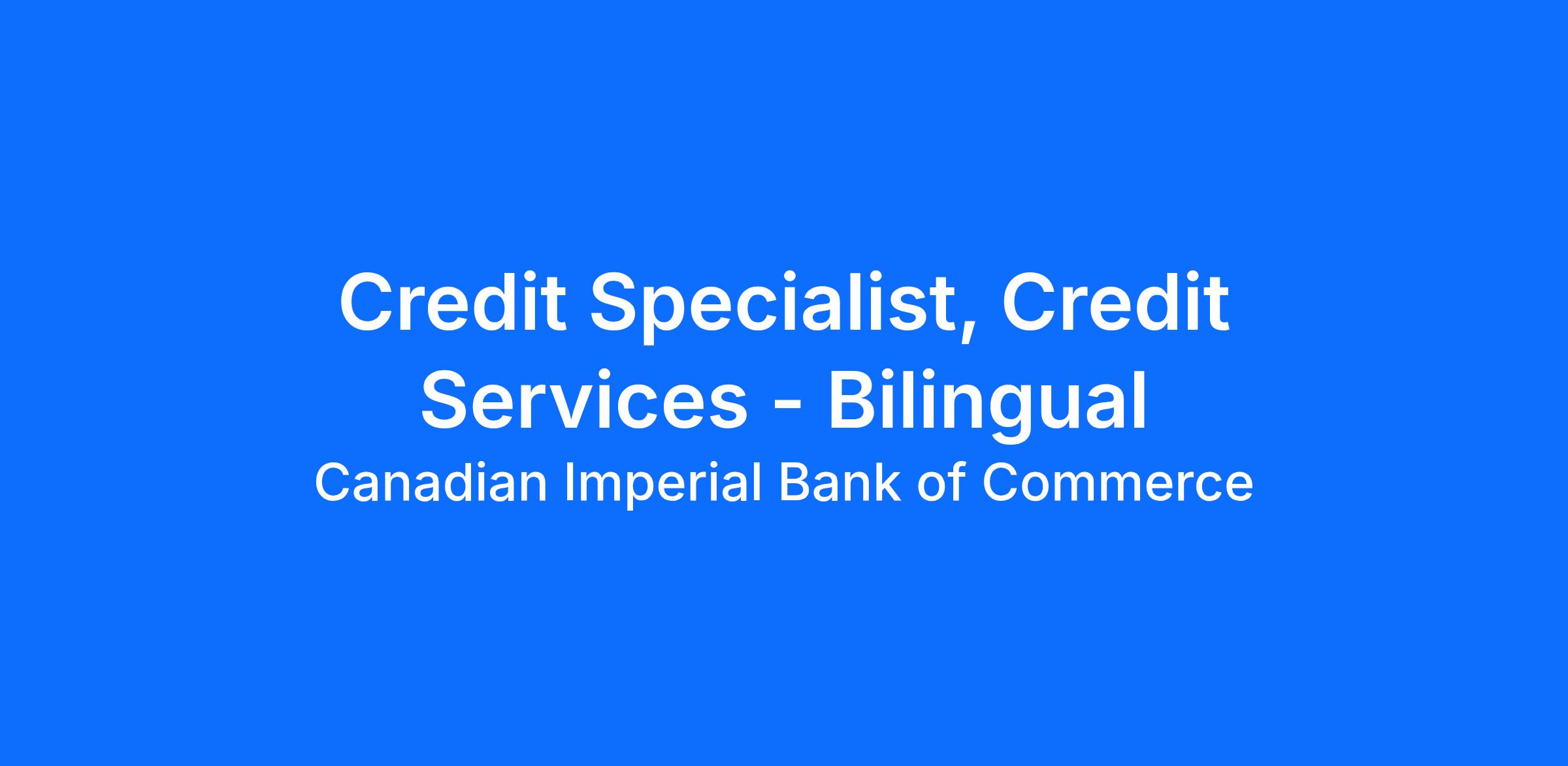 The primary role of the Credit Specialist is to provide guidance and support to the Credit Service Specialists, management team and various CIBC partners on escalated complex credit issues including support to Cards Call Center and Banking Centres. The job requires an extensive working experience in a credit-lending environment. The Senior Credit Specialist will strive to maintain a strong focus on the achievement of service excellence by providing positive memorable customer experiences that build confidence in our organization. Representatives are expected to respect and uphold CIBC guidelines, rules, policies, and procedures.