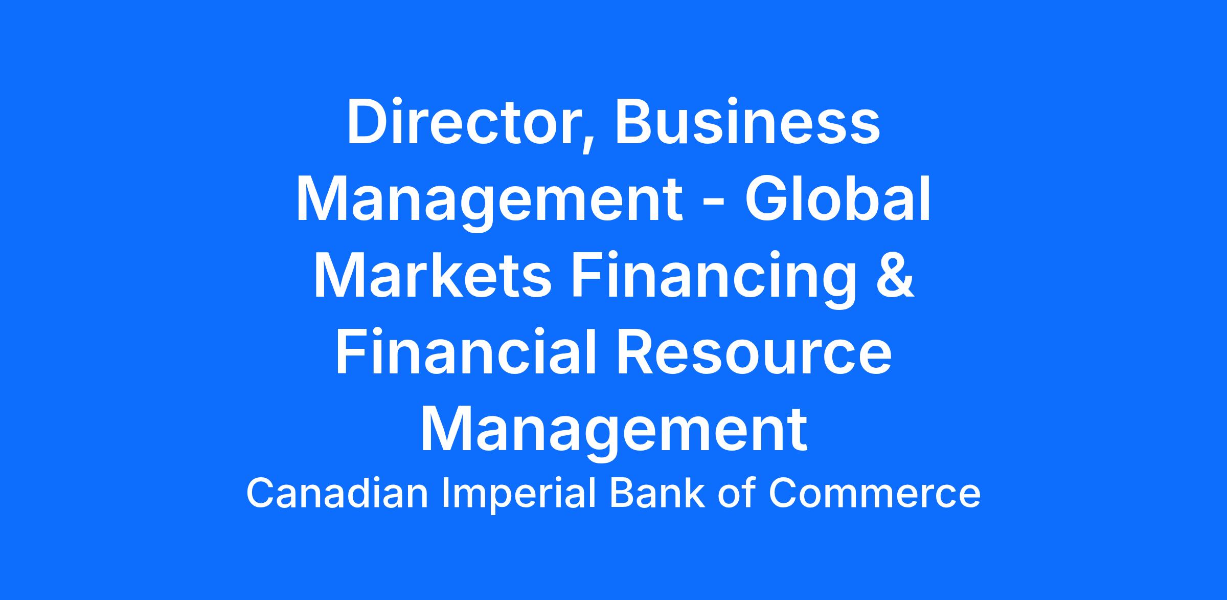As a Director, Business Management, Global Markets Financing and Financial Resource Management (GMF & FRM), you will contribute to the Business Management function pertaining to all of the components of GMF & FRM liaising with the business (front office) and across CIBC to ensure all business strategies/initiatives/projects/regulatory & compliance issues are addressed and resolved. You will be accessible to the business throughout the day to actively respond to information requirements and requests, resolving day-to-day issues as they arise. You will complete tasks that impact the firm's bottom line, interacting directly with all team members and infrastructure groups in a fast-paced environment.