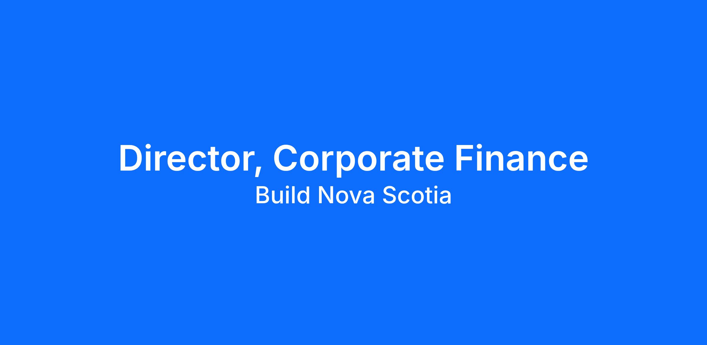 The Director, Corporate Finance is accountable for providing strategic and technical leadership in the development and execution of Build Nova Scotia's financial management framework to support the organization's mandate and objectives, in alignment with applicable legislation, government policies, and corporate governance requirements.