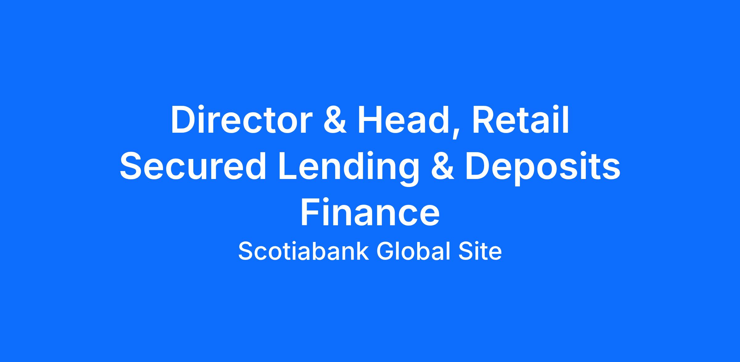 The Director & Head, Retail Secured Lending & Deposits Finance provides input into the strategic direction, leadership and oversight for all finance matters for Real Estate Secured Lending (RESL) and the Retail Deposits & Investments (RD&I), ensuring business strategies, plans and initiatives are supported in compliance with governing regulations, internal policies and procedures.