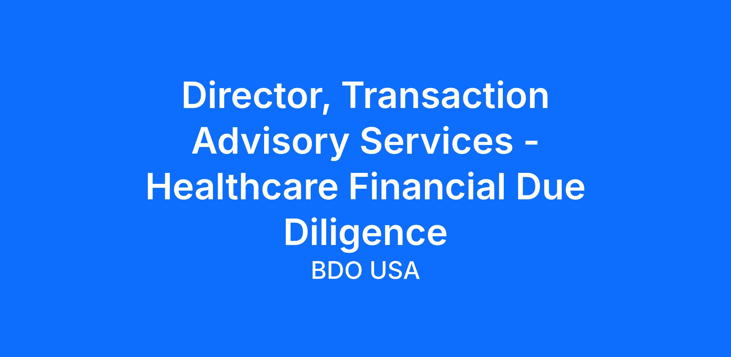 The Transaction Advisory Services (TAS) Director is an essential team member that will work to ensure financial due diligence engagements are executed timely and that client expectations are met, if not exceeded and support the overall delivery of the national TAS strategy.