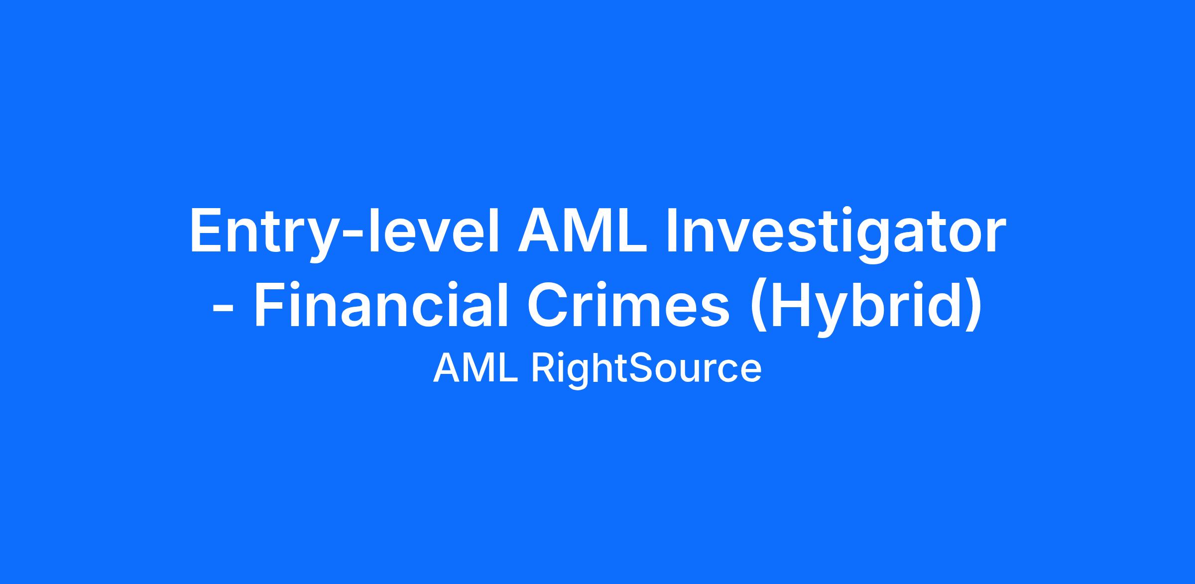 No prior experience required! We provide comprehensive training to help you build a career in financial crime compliance. As an Entry-Level Anti-Money Laundering (AML) Investigator, you will review transactions, identify suspicious activity, and support Know Your Customer (KYC) compliance.