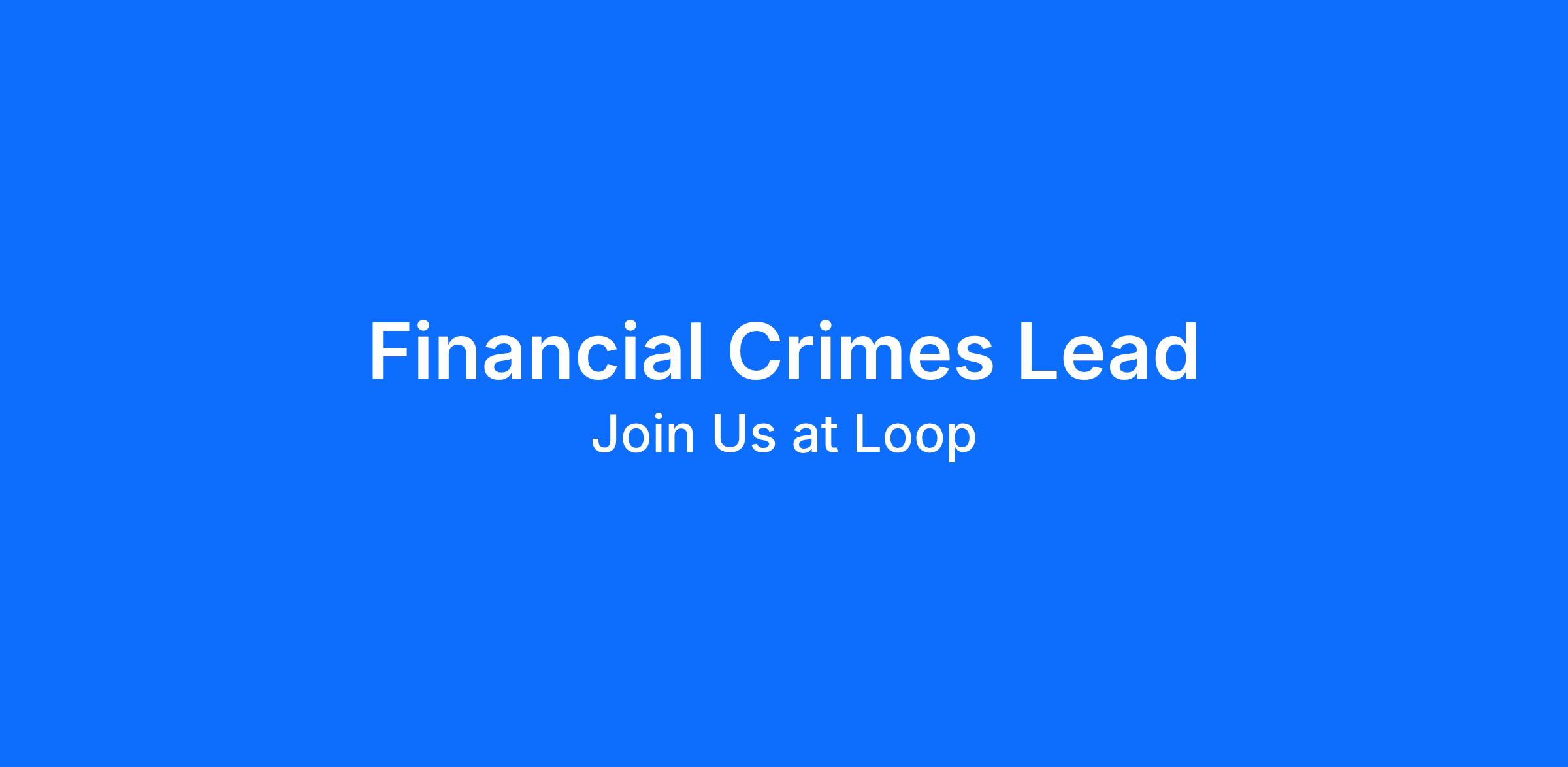 Hi, I’m Brandon, Head of Operations at Loop, and I’m hiring a Financial Crimes Lead to support Loop’s regulatory compliance, AML program, and risk & fraud monitoring operations as we scale.