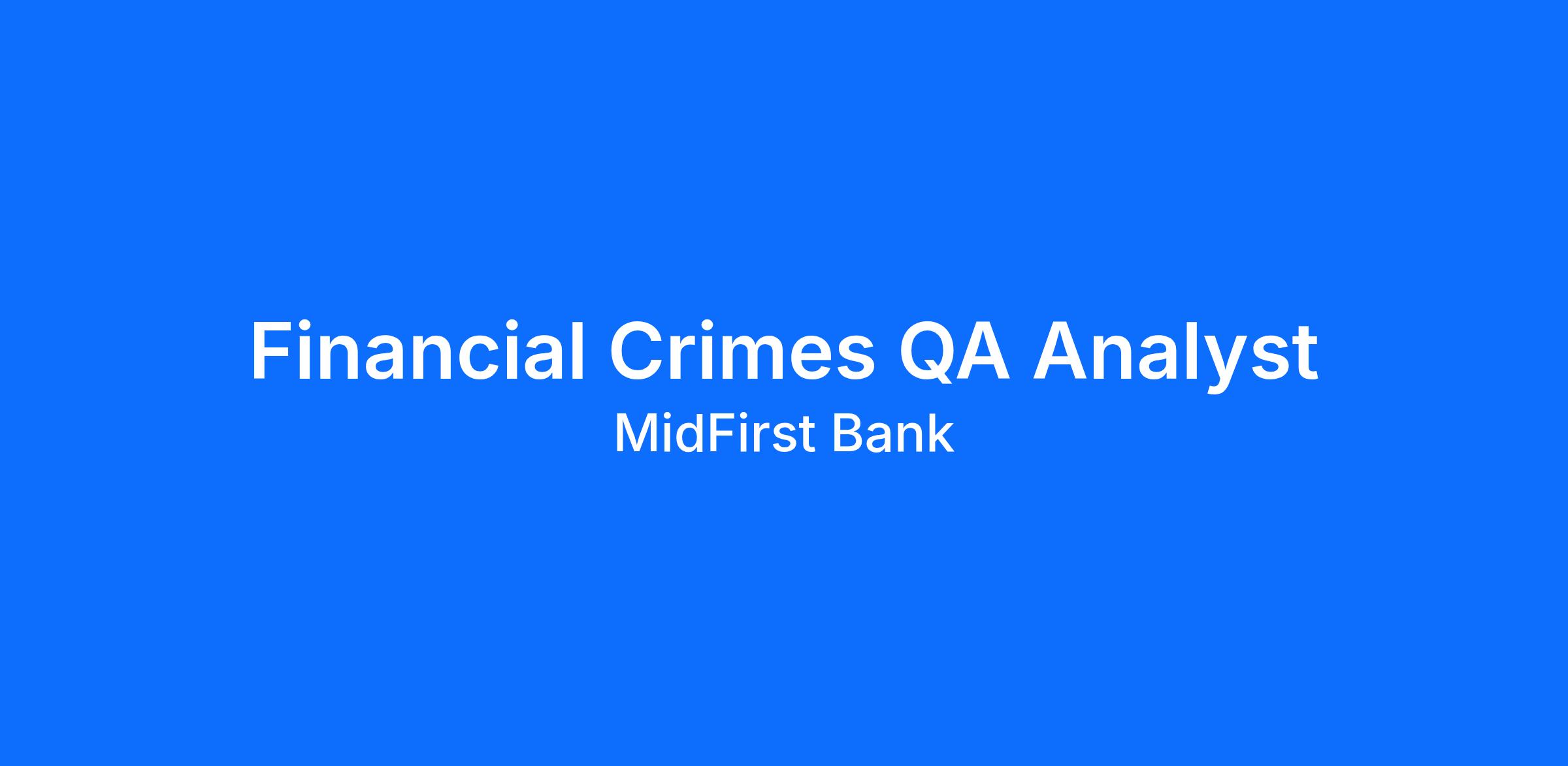 The Financial Crimes QA Analyst will be responsible for performing operational and compliance assessments for various products, services, and areas of the bank related to BSA/AML, Fraud, and OFAC compliance and risk. The QA Analyst will routinely utilize analytical methods to evaluate and validate data, evaluate controls, and identify potential risks, gaps, or areas of non-compliance. The QA Analyst is responsible for root cause analysis and providing recommendations for process/control improvements to help mitigate risk and achieve compliance.
