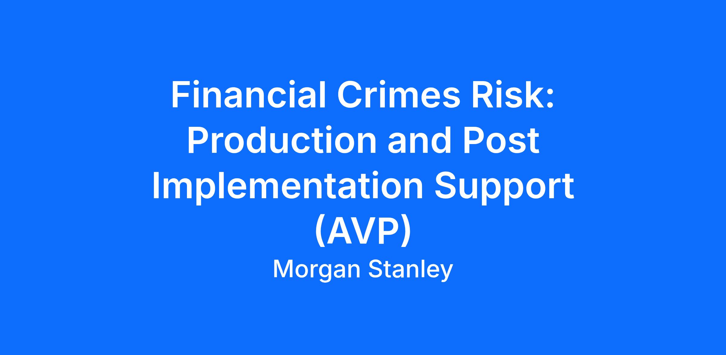 This role is well suited for analytical professionals who are looking to deepen their experience in Financial Crimes technology and production environments.