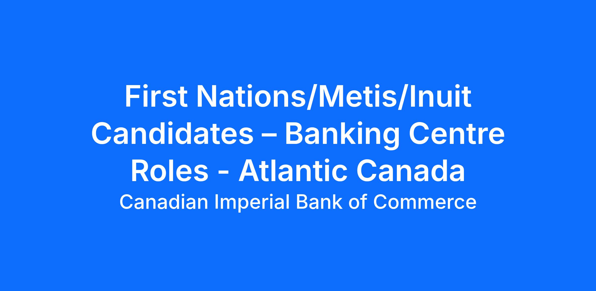 First Nations/Metis/Inuit Candidates – Banking Centre Roles - Atlantic Canada