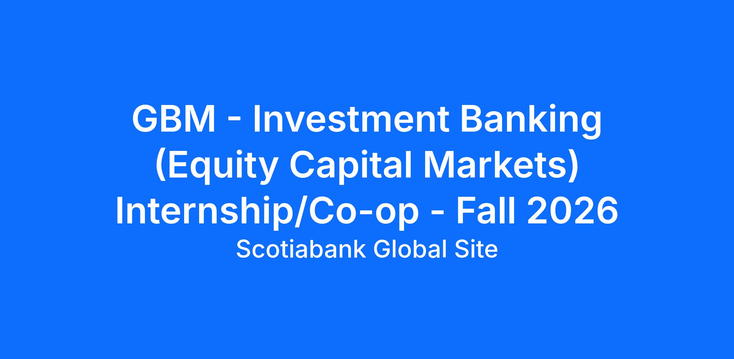 Global Banking and Markets – Investment Banking Internship/Co-op – Fall 2026