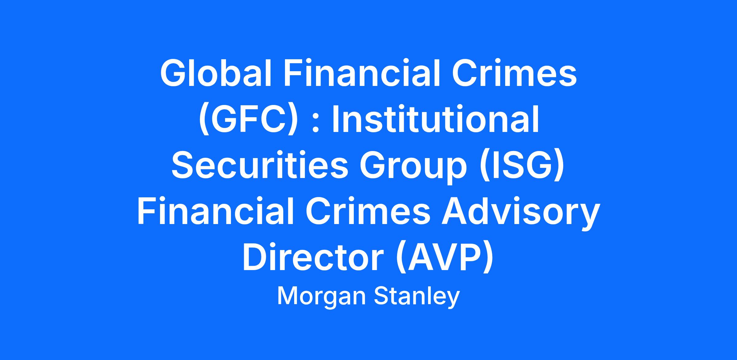 We are seeking someone to join our team as a Global Financial Crimes (GFC) : Institutional Securities Group (ISG) Financial Crimes Advisory Professional.