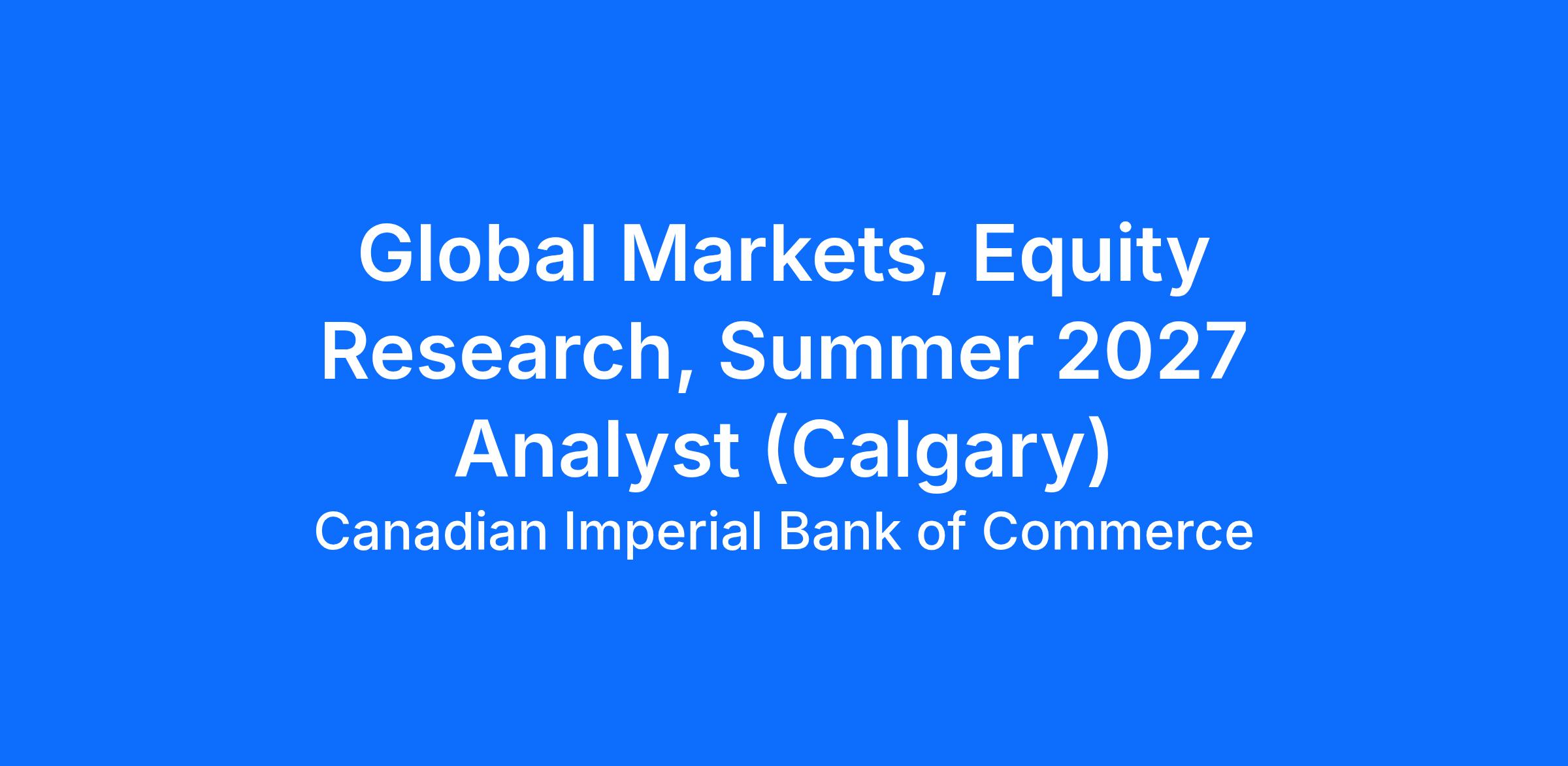 As a member of the Global Markets team, you’ll be delivering innovative banking and investment solutions to CIBC’s retail, wealth and business clients including corporates, governments and institutional clients around the world. Our goal remains to be the leading Capital Markets franchise in Canada and to work as one team to build our brand across North America and the world - proudly living our values as we work toward our vision to be the leader in client relationships. CIBC is committed to a fair and inclusive work environment where diverse ideas and perspectives are valued.