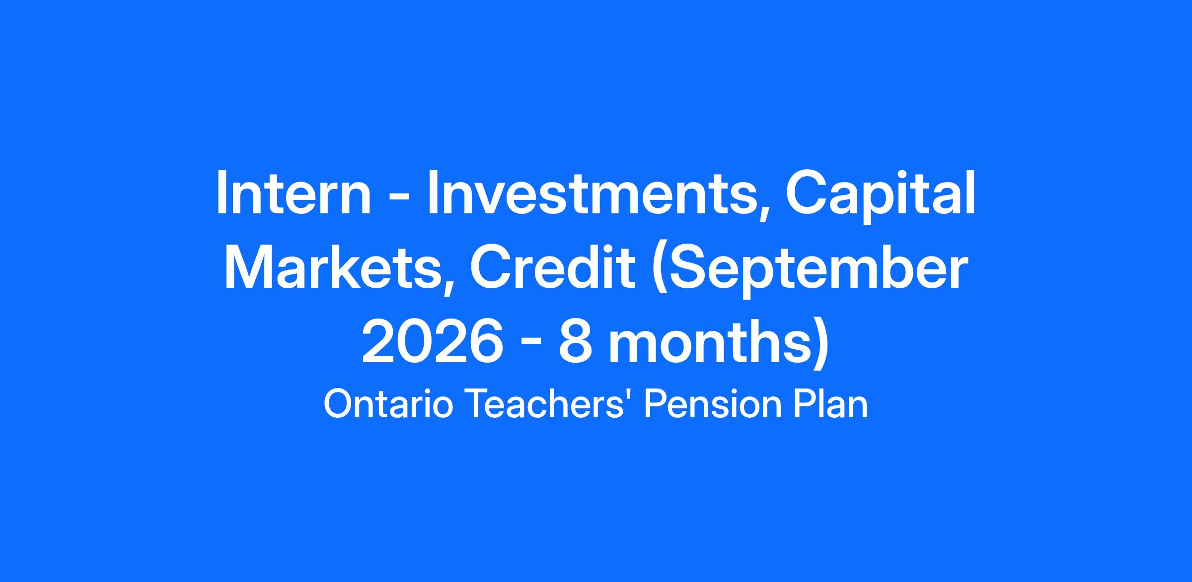 Accommodations are available upon request (peopleandculture@otpp.com) for candidates with a disability taking part in the recruitment process and once hired.