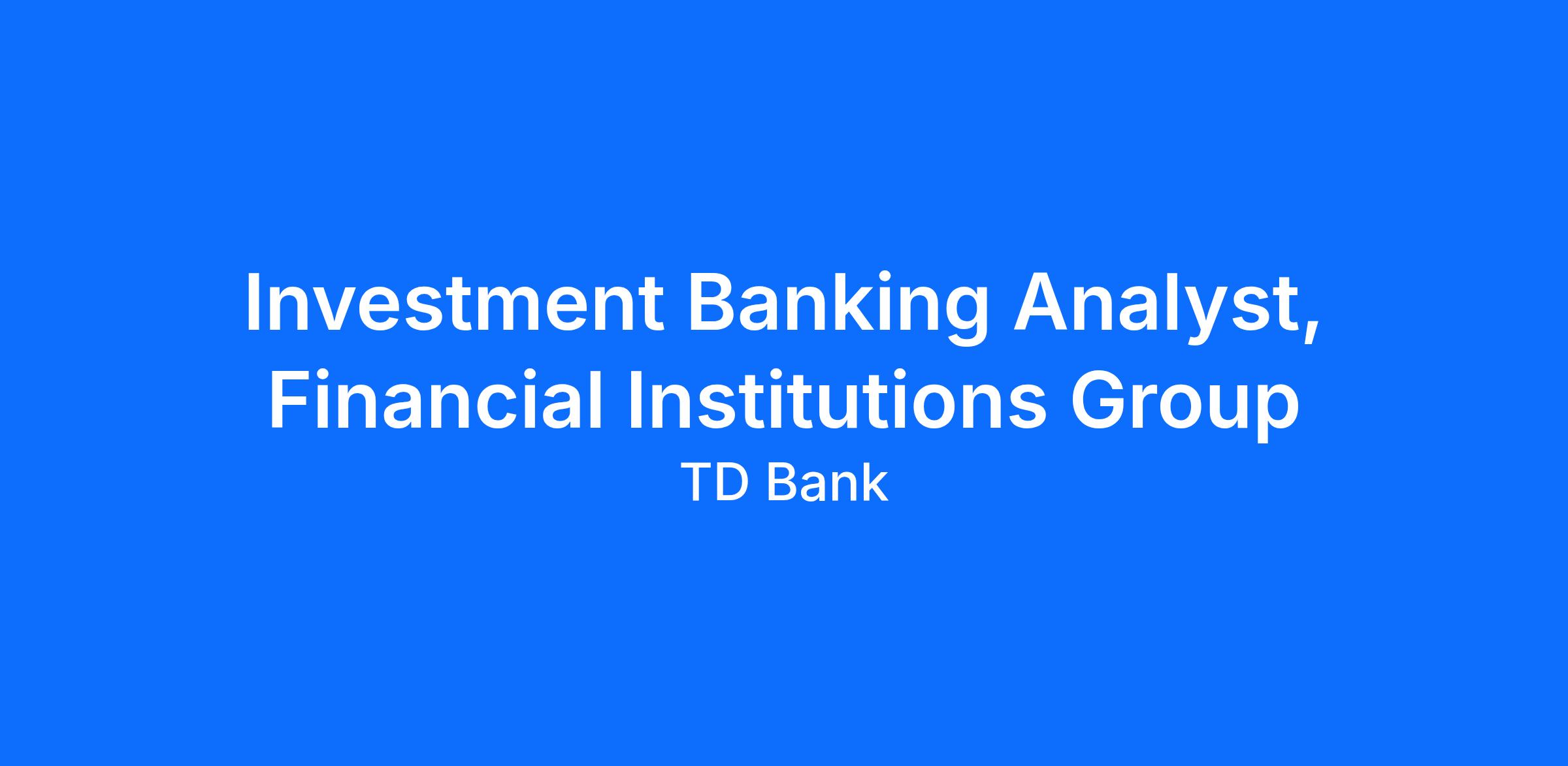 Investment Banking Opportunities at TD Securities