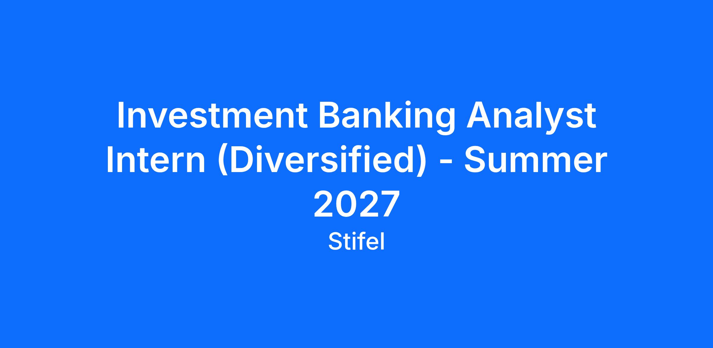 Stifel Canada has a strong position in the Canadian market, has an international reach and is continuing to grow by adding top talent. The role offers candidates an opportunity to gain valuable, hands-on work experience that is focused on the financial markets. In Canada, we are primarily organized into industry teams focused on specific sectors. These include: Technology, Consumer, Diversified Industries, and Life Sciences.