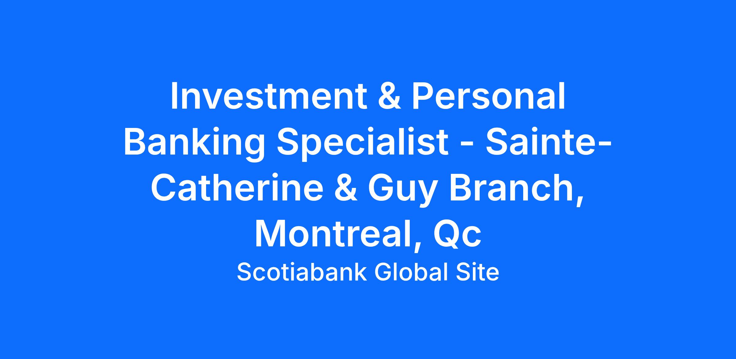 As an Investment & Personal Banking Specialist you are customer-centric and able to connect with people in a relatable way. As an essential member of the Canadian Banking Branch network, your focus is to provide exceptional service throughout the customer’s journey.