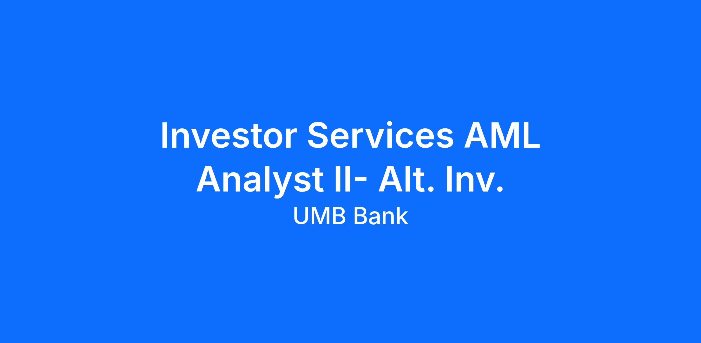 Independently complete operations related to investor services functions, specifically related to anti-money laundering (AML) processes, for multiple alternative investment clients and funds.