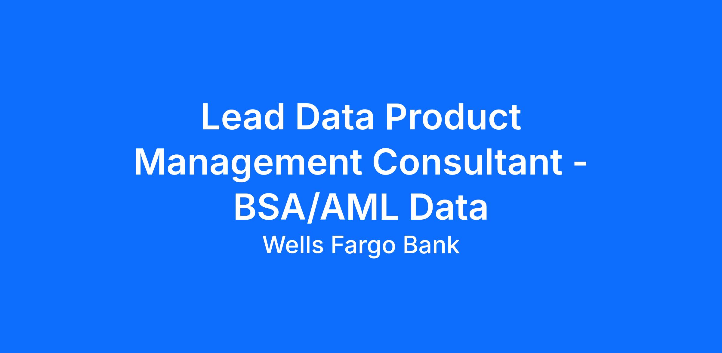 Wells Fargo is seeking a Lead Data Product Management Consultant that