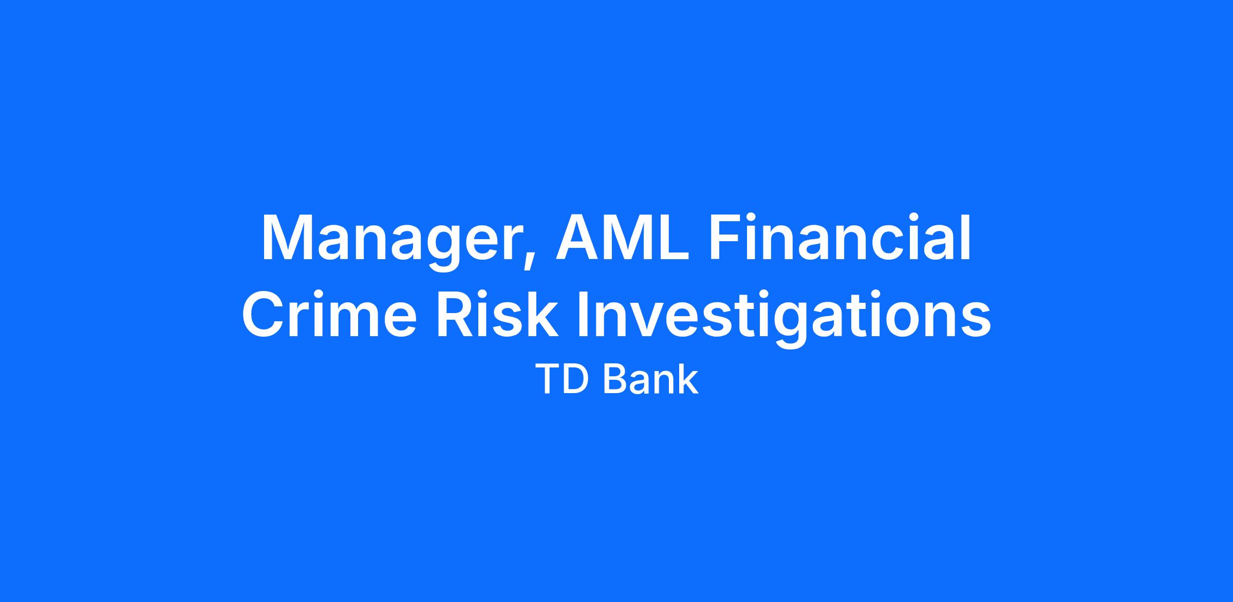 The Manager, AML Financial Crime Risk Investigations leads a group of AML Analyst/Investigators and manages daily activities within the Adjudication's team. The manager is expected to provide guidance, coaching, mentorship, and development to team, and to ensure project objectives and operational results are achieved for the overall group.
